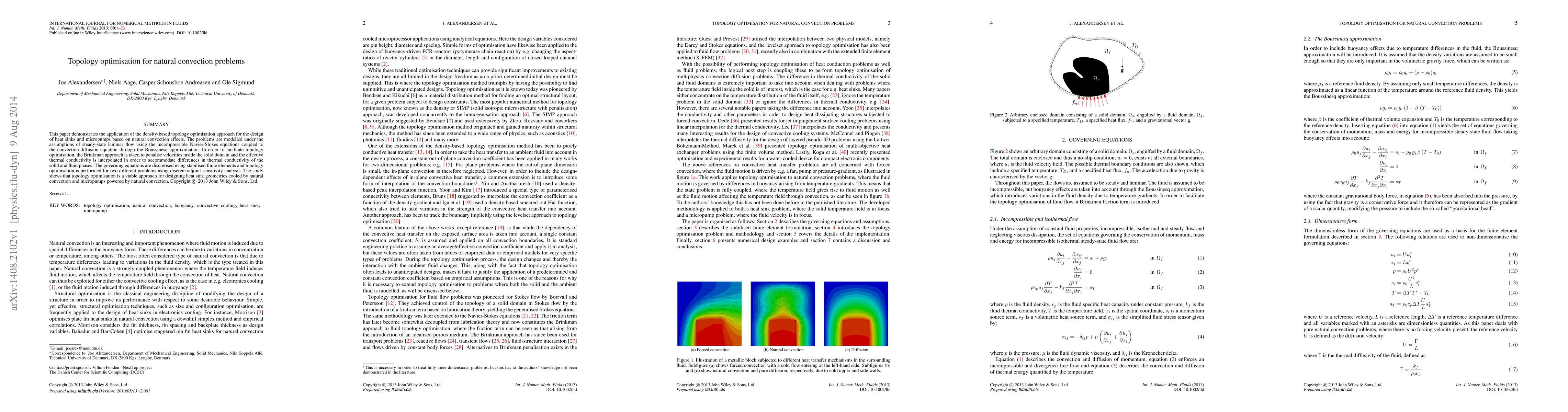 This paper applies density-based topology optimisation to design heat sinks and micropumps relying on natural convection, employing the Brinkman approach and stabilised finite elements. The results indicate the effectiveness of topology optimisation for natural convection-based cooling and pumping designs.
