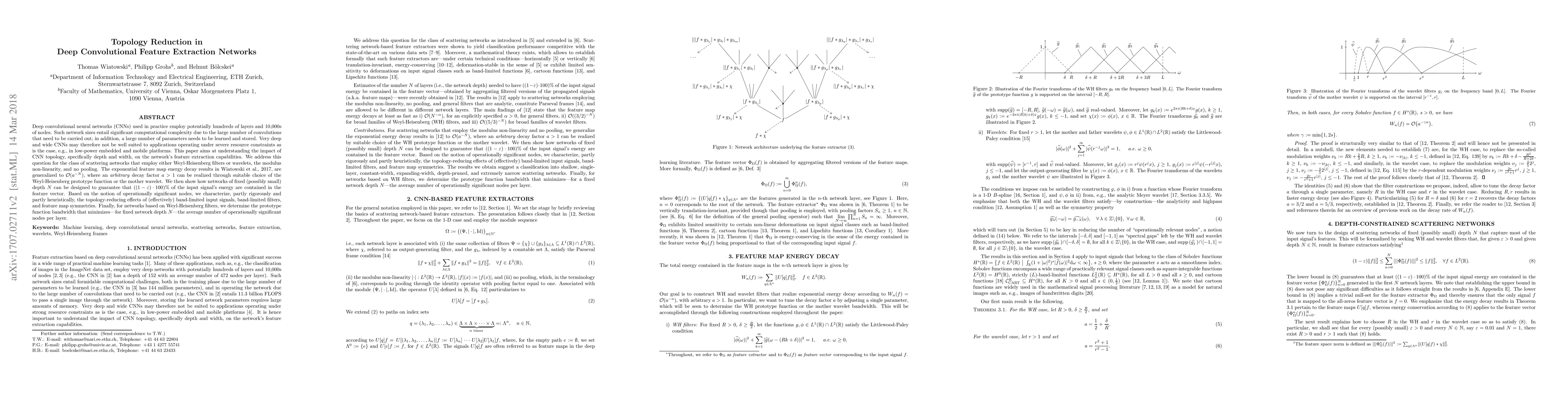 This paper investigates how to reduce computational complexity in deep convolutional neural networks while maintaining their feature extraction capabilities, focusing on topology reduction techniques for scattering networks with Weyl-Heisenberg filters or wavelets.