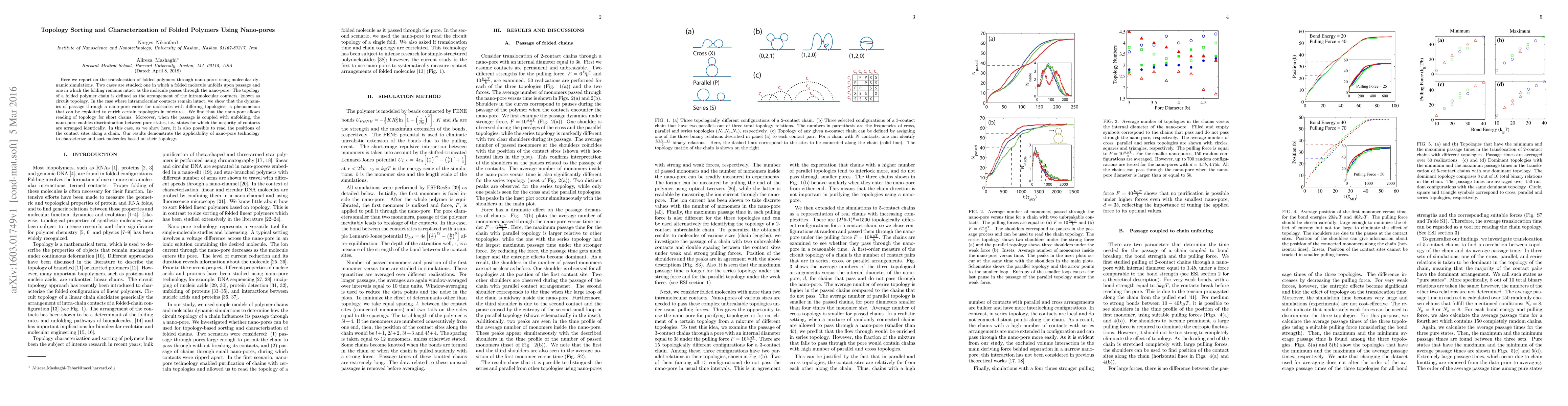 This paper uses molecular dynamic simulations to study the translocation of folded polymers through nano-pores, revealing the topology of polymer chains. It shows that nano-pores can distinguish and sort polymer chains based on their topology, especially when coupled with unfolding, enabling the reading of contact site positions.