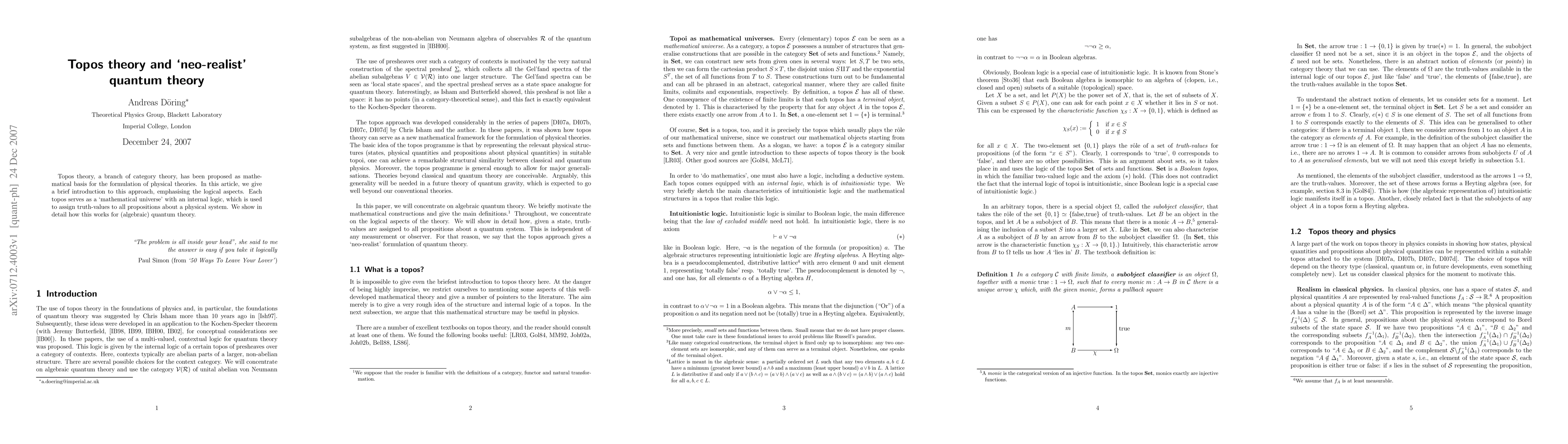 Topos theory, a branch of category theory, has been proposed as mathematical basis for the formulation of physical theories. In this article, we give a brief introduction to this approach, emphasising the logical aspects. Each topos serves as a `mathematical universe' with an internal logic, which is used to assign truth-values to all propositions about a physical system. We show in detail how this works for (algebraic) quantum theory.