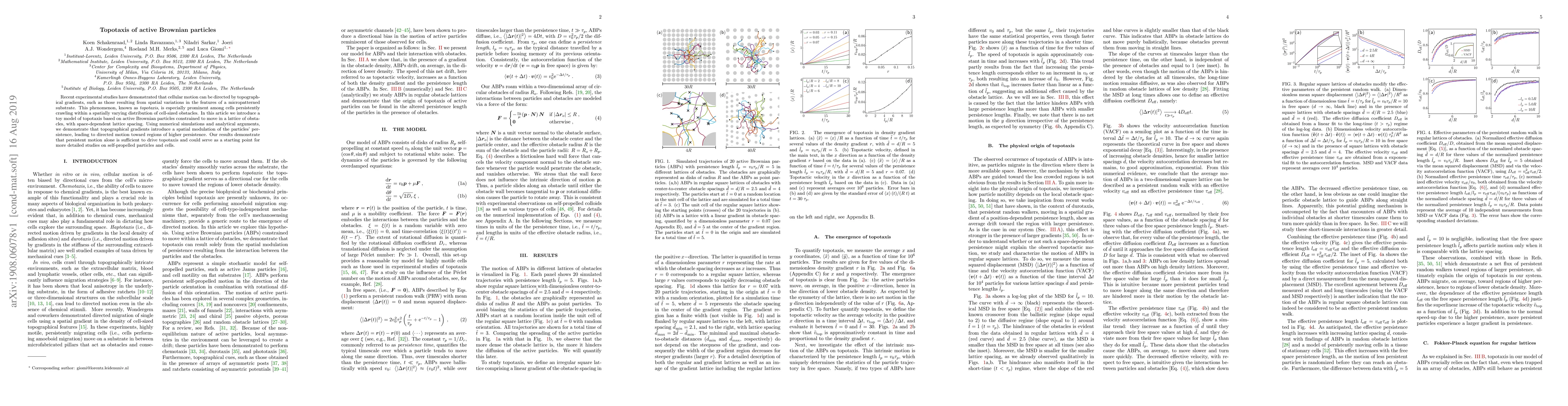 Recent experimental studies have demonstrated that cellular motion can be directed by topographical gradients, such as those resulting from spatial variations in the features of a micropatterned substrate. This phenomenon, known as topotaxis, is especially prominent among cells persistently crawling within a spatially varying distribution of cell-sized obstacles. In this article we introduce a toy model of topotaxis based on active Brownian particles constrained to move in a lattice of obstacles, with space-dependent lattice spacing. Using numerical simulations and analytical arguments, we demonstrate that topographical gradients introduce a spatial modulation of the particles' persistence, leading to directed motion toward regions of higher persistence. Our results demonstrate that persistent motion alone is sufficient to drive topotaxis and could serve as a starting point for more detailed studies on self-propelled particles and cells.