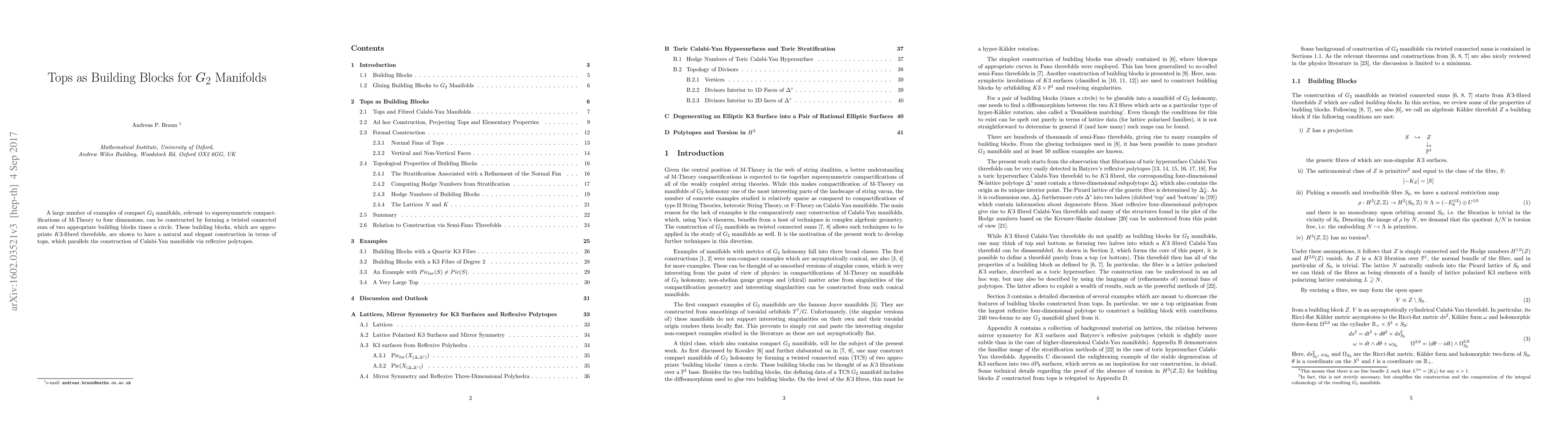 This paper constructs compact $G_2$ manifolds using twisted connected sums of $K3$-fibred threefolds, referred to as "tops," which provide a natural and elegant framework akin to the construction of Calabi-Yau manifolds via reflexive polytopes. These constructions are significant for supersymmetric compactifications of M-Theory.