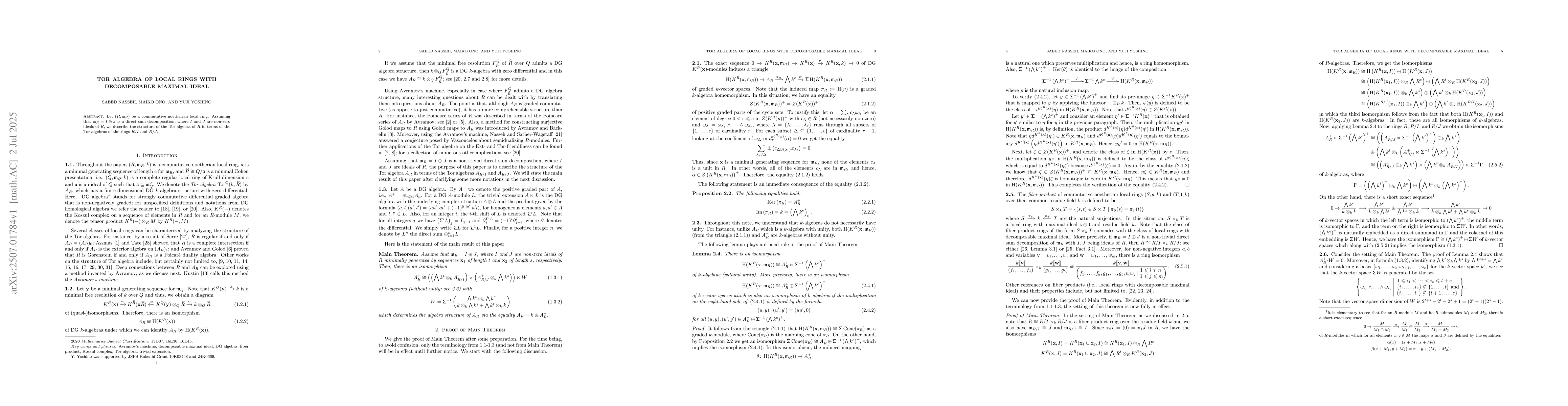 Let $(R,{\frak{m}}_R)$ be a commutative noetherian local ring. Assuming that ${\frak{m}}_R=$$I\oplus J$ is a direct sum decomposition, where $I$ and $J$ are non-zero ideals of $R$, we describe the structure of the Tor algebra of $R$ in terms of the Tor algebras of the rings $R/I$ and $R/J$.