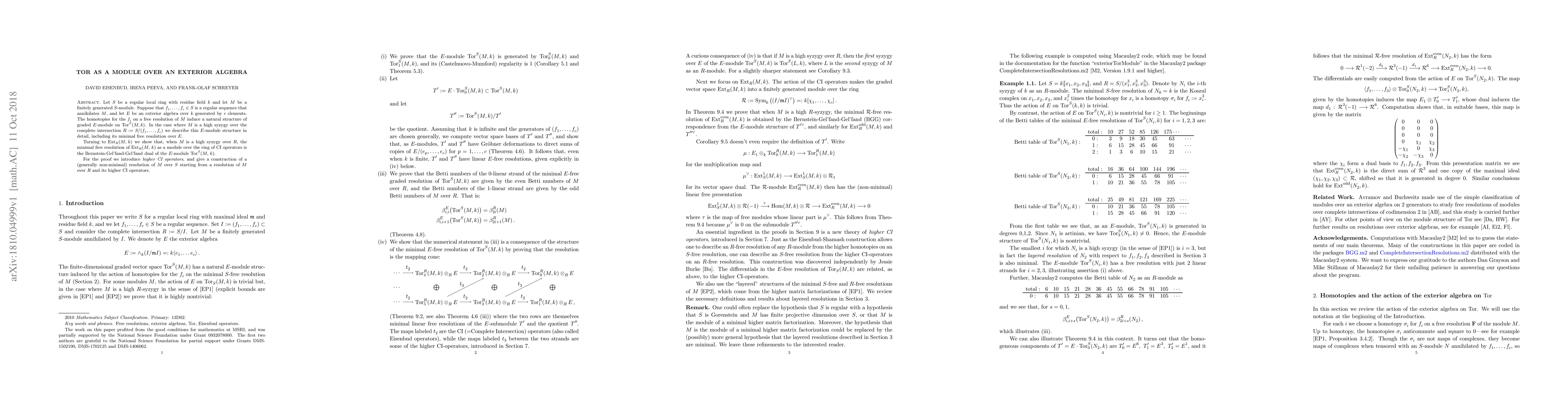 This research paper explores the connection between exterior algebras and Tor modules, providing a new structure on Tor and showing that certain Ext modules have a minimal free resolution related to the Tor module.
