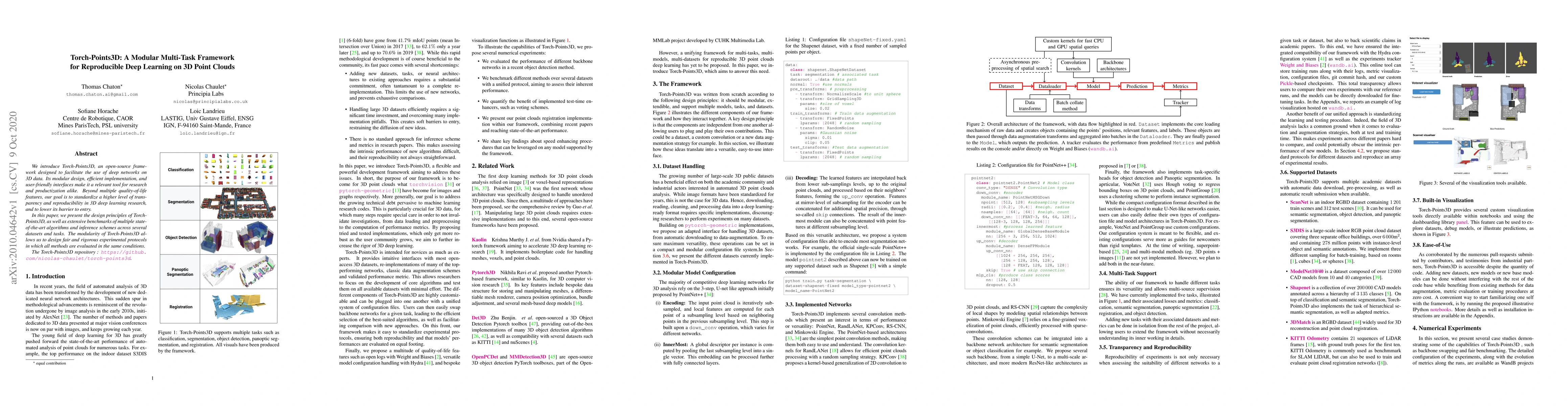 Torch-Points3D is an open-source framework designed for efficient deep learning on 3D point clouds, offering a modular structure and user-friendly interfaces. It aims to standardize transparency and reproducibility in 3D deep learning research, providing fair benchmarks for various state-of-the-art algorithms and inference schemes.
