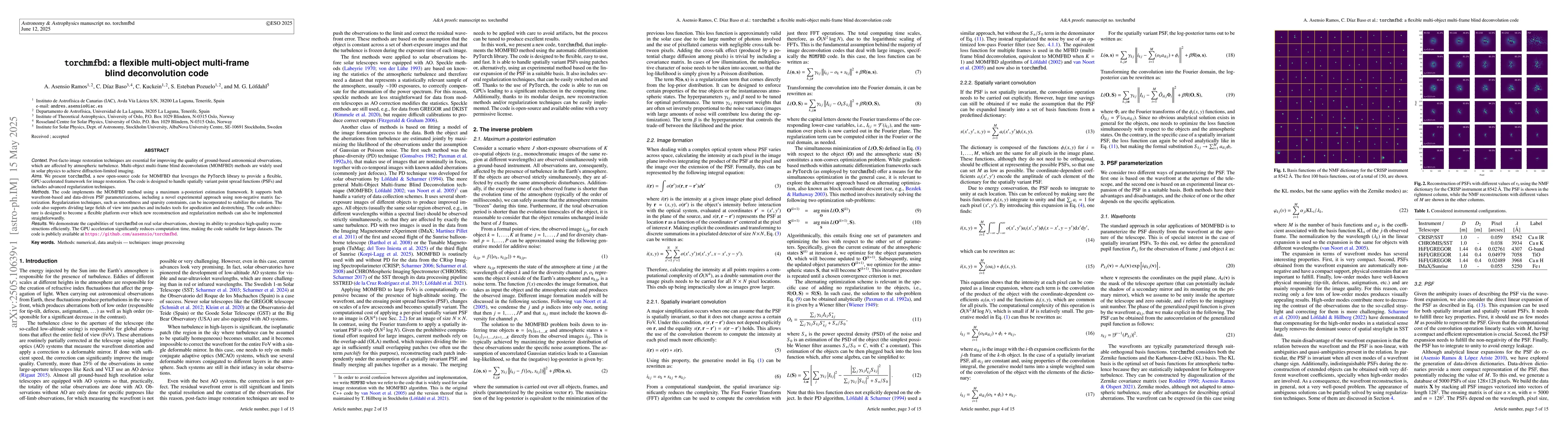 The research introduces torchmfbd, an open-source MOMFBD code leveraging PyTorch for GPU-accelerated image restoration, handling spatially variant PSFs, and incorporating advanced regularization techniques within a maximum a-posteriori estimation framework.