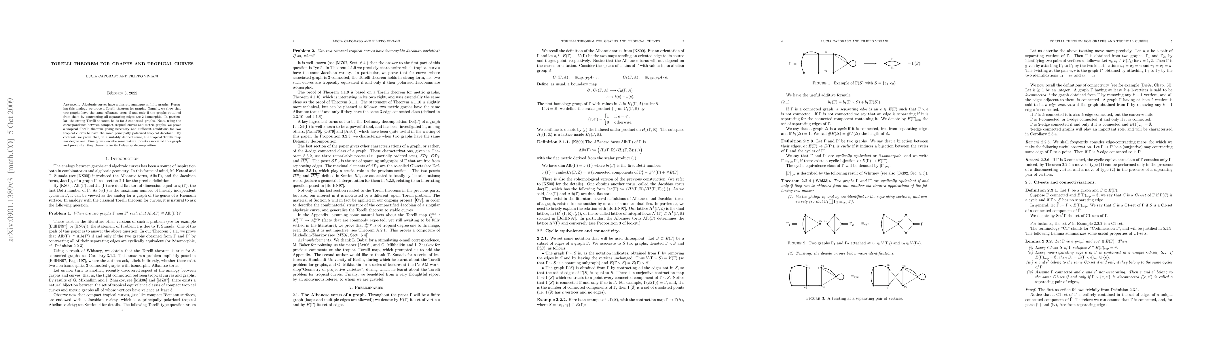 The paper proves a Torelli theorem for graphs, showing that graph isomorphism based on contracted separating edges corresponds to Albanese torus equivalence, and extends this to tropical curves. It also establishes posets that characterize a graph's Delaunay decomposition.