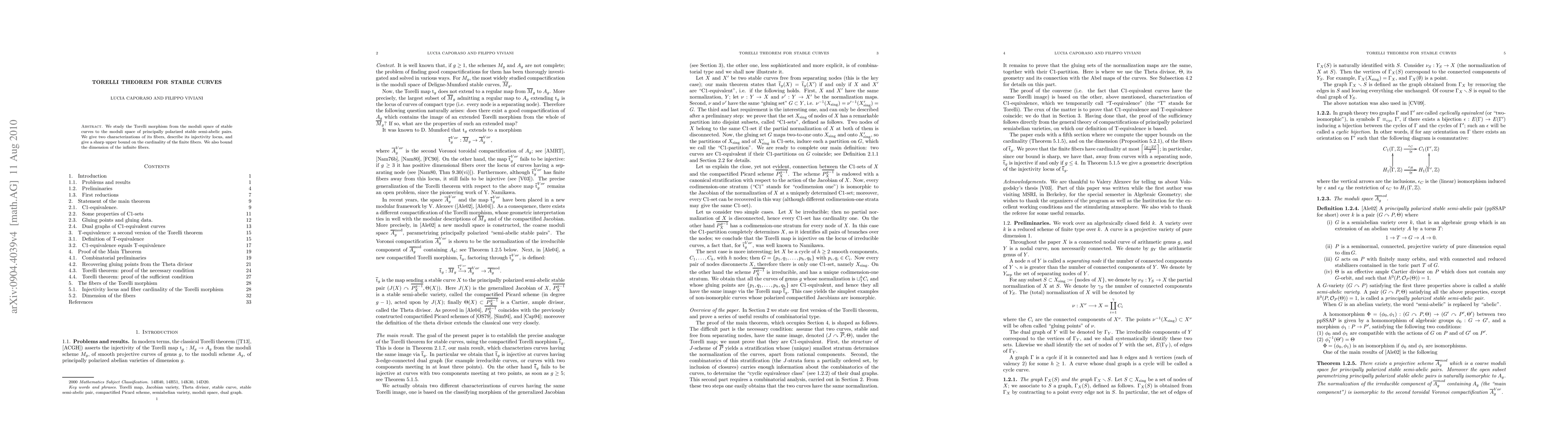 Summary: This paper investigates the Torelli morphism for stable curves, providing characterizations of its fibers, determining its injectivity locus, and establishing bounds on the cardinality and dimension of the fibers. It concludes that the compactified Torelli map is injective for curves of genus at most 4, excluding those with separating nodes.
