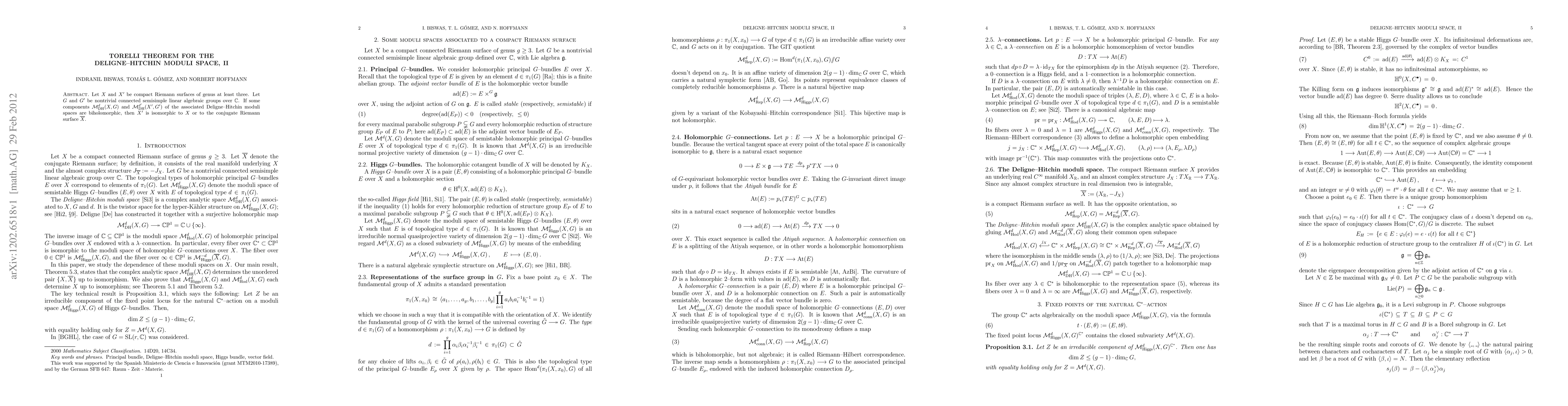 Let X and X' be compact Riemann surfaces of genus at least three. Let G and G' be nontrivial connected semisimple linear algebraic groups over C. If some components $M_{DH}^d(X,G)$ and $M_{DH}^{d'}(X',G')$ of the associated Deligne--Hitchin moduli spaces are biholomorphic, then X' is isomorphic to X or to the conjugate Riemann surface $\bar{X}$.