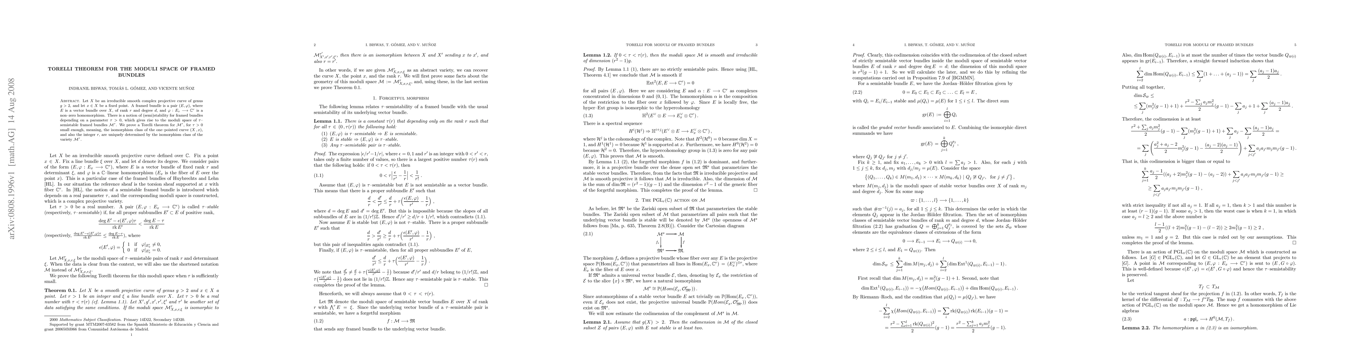 This paper proves a Torelli theorem for the moduli space of τ-semistable framed bundles over a smooth complex projective curve of genus g > 2, showing that the isomorphism class of the curve and the rank r are uniquely determined by the moduli space M^τ for small enough τ > 0.