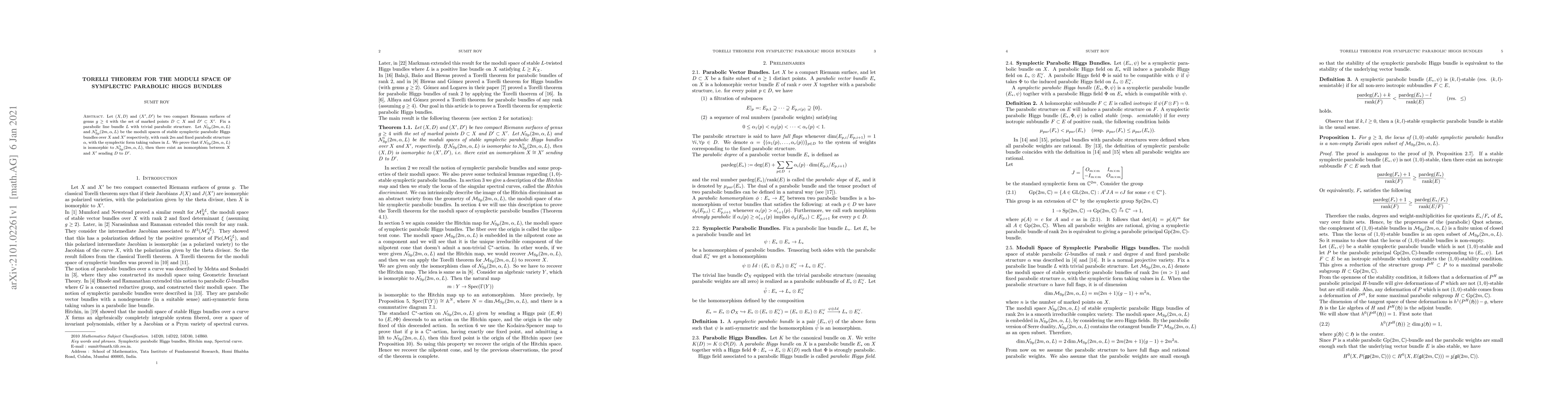 The paper proves a Torelli-type theorem for moduli spaces of stable symplectic parabolic Higgs bundles, showing that isomorphic moduli spaces imply an isomorphism between the underlying Riemann surfaces that respects marked points.