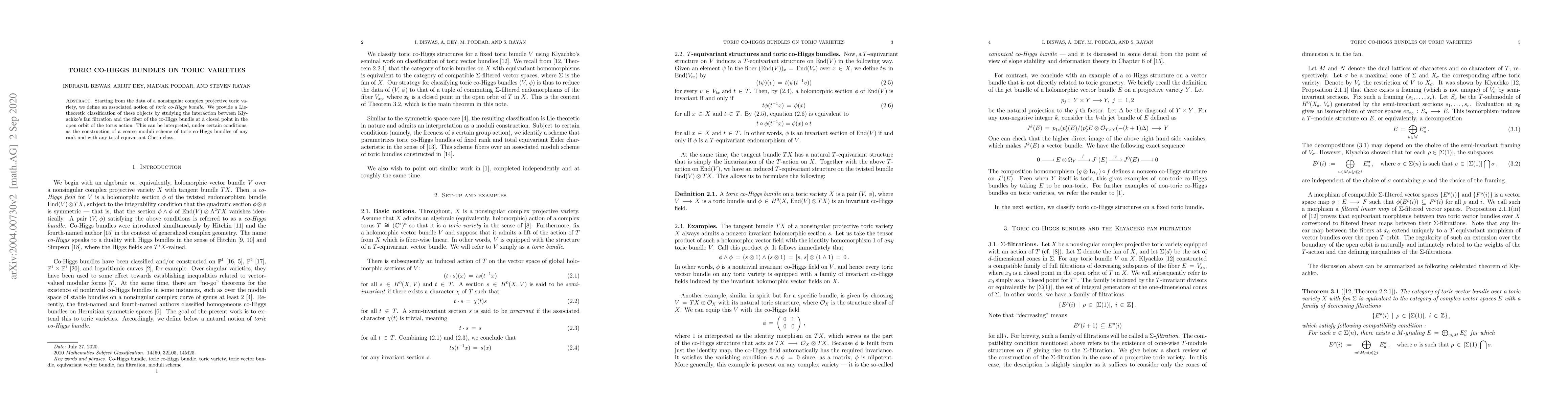 This paper defines toric co-Higgs bundles on nonsingular projective toric varieties and classifies them using Lie-theoretic methods based on Klyachko's fan filtration, leading to a construction of a moduli scheme for these bundles.