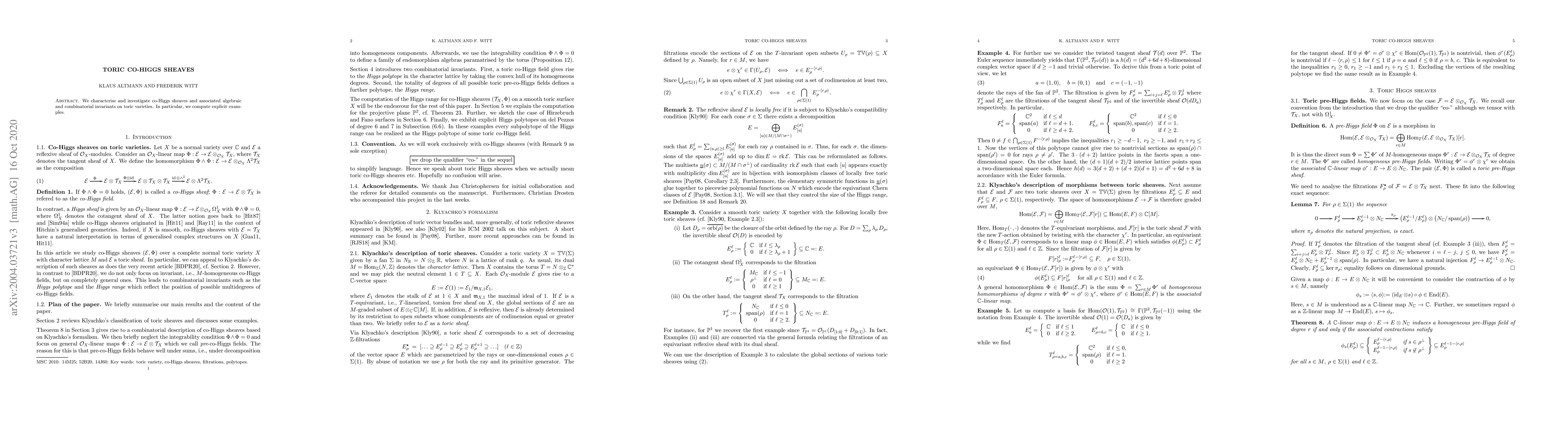 Summary: This paper characterizes co-Higgs sheaves on toric varieties, explores their algebraic and combinatorial invariants, and provides explicit examples to illustrate the findings. The study emphasizes the interplay between geometry and combinatorics in toric settings.