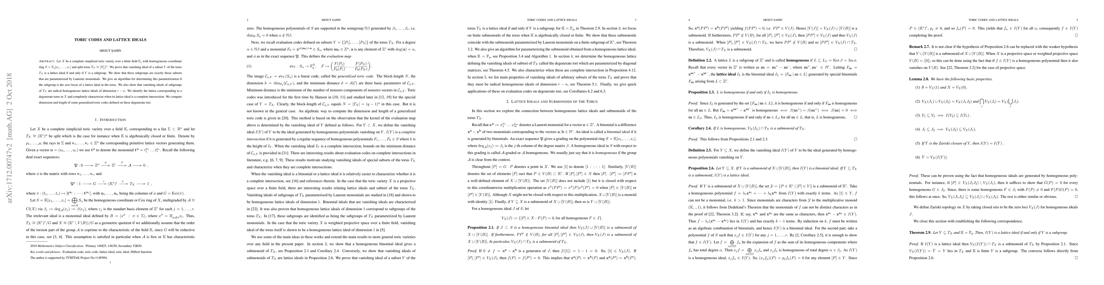 This research paper establishes a connection between toric codes and lattice ideals on complete simplicial toric varieties over finite fields. It provides an algorithm for determining the parameterization of subgroups in the torus and characterizes conditions under which their vanishing ideals are complete intersection lattice ideals.