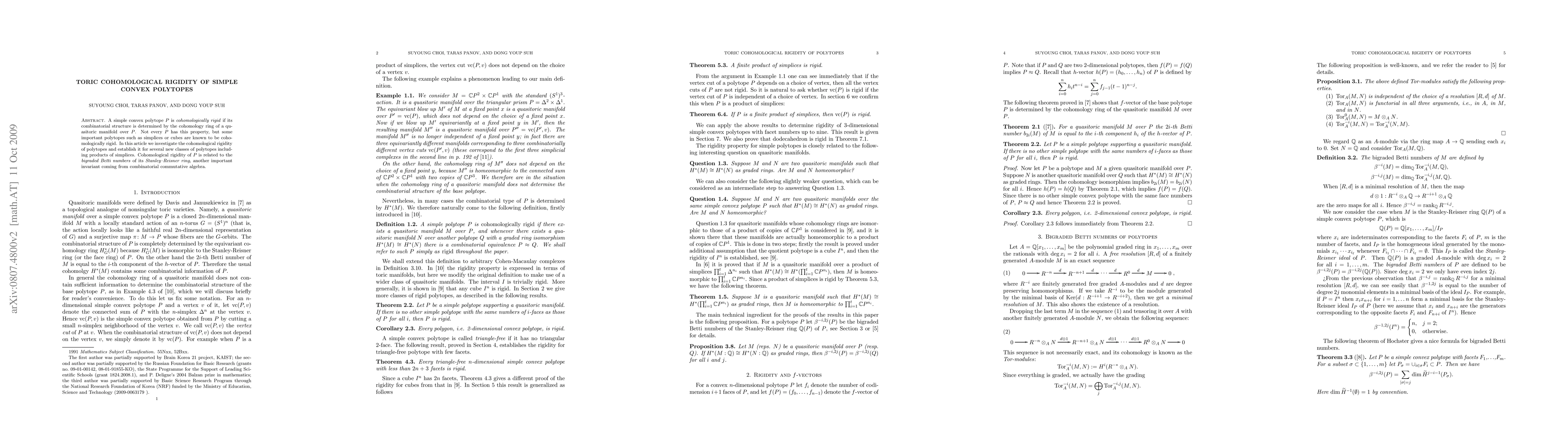 This paper explores the cohomological rigidity of simple convex polytopes, establishing it for new classes including products of simplices, and connects this property to the bigraded Betti numbers of the polytope's Stanley-Reisner ring. The study emphasizes the combinatorial structure's determination via the cohomology ring of a quasitoric manifold over the polytope.