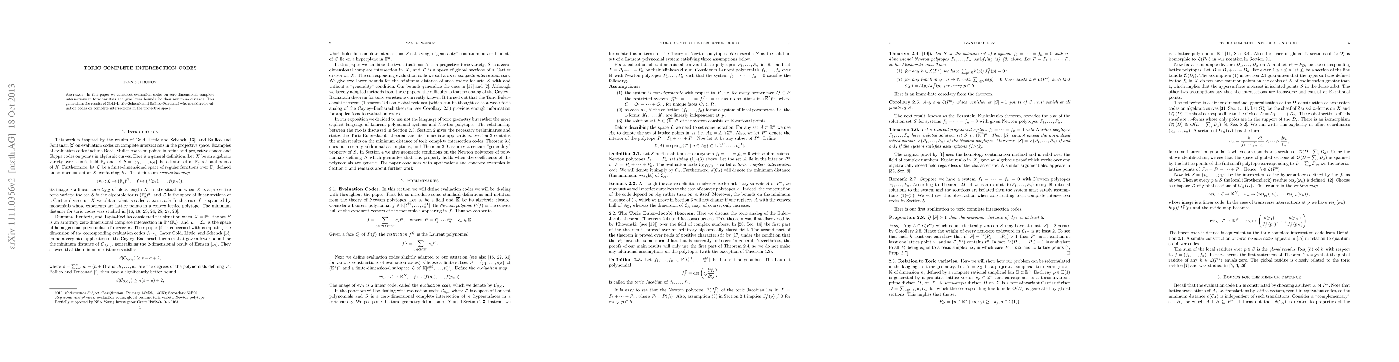 This paper provides lower bounds for the minimum distance of toric complete intersection codes, extending previous results for evaluation codes in projective space by Gold-Little-Schenck and Ballico-Fontanari. The findings offer new insights into coding theory in toric geometry.