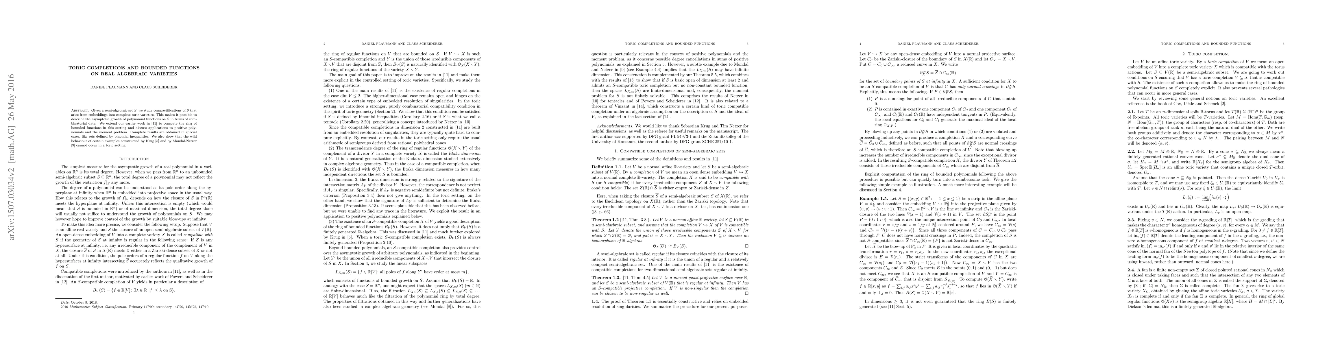 Given a semi-algebraic set S, we study compactifications of S that arise from embeddings into complete toric varieties. This makes it possible to describe the asymptotic growth of polynomial functions on S in terms of combinatorial data. We extend our earlier work to compute the ring of bounded functions in this setting and discuss applications to positive polynomials and the moment problem. Complete results are obtained in special cases, like sets defined by binomial inequalities. We also show that the wild behaviour of certain examples constructed by Krug and by Mondal-Netzer cannot occur in a toric setting.