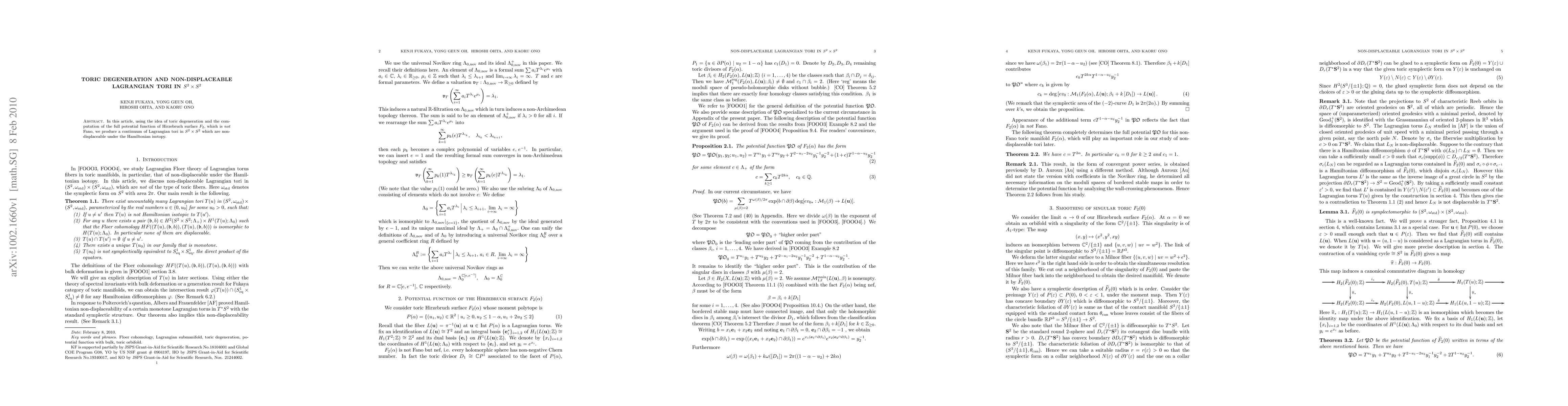 Summary: The paper explores the use of toric degeneration and the Hirzebruch surface $F_2$ potential to generate a continuum of non-displaceable Lagrangian tori in $S^2 \times S^2$. These tori are invariant under Hamiltonian isotopy.