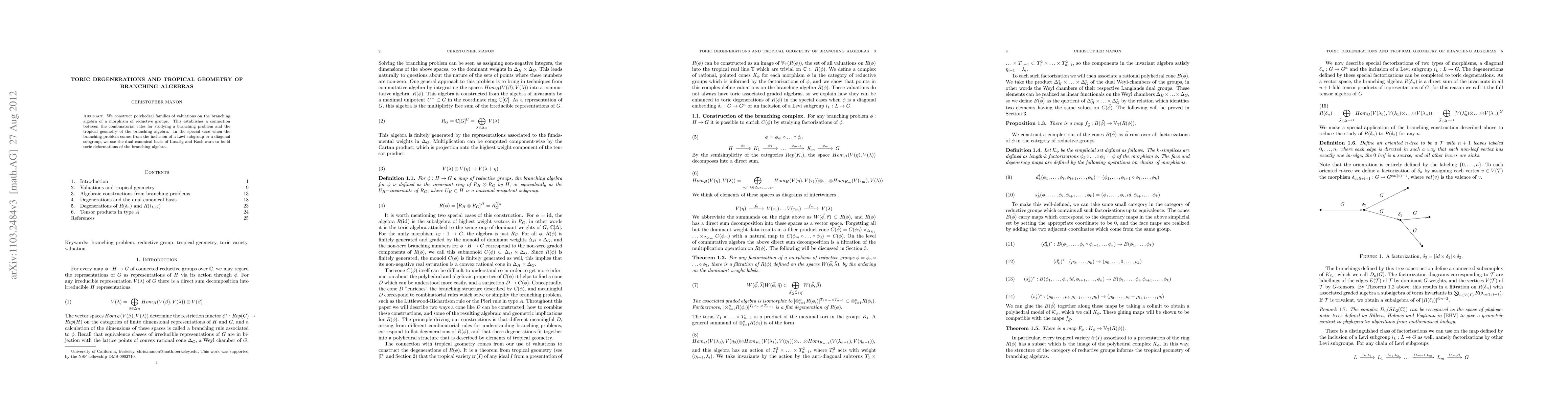 Researchers connected combinatorial rules for branching problems to tropical geometry of branching algebras, providing a new framework for studying these issues. They also developed toric deformations using dual canonical bases in specific cases.
