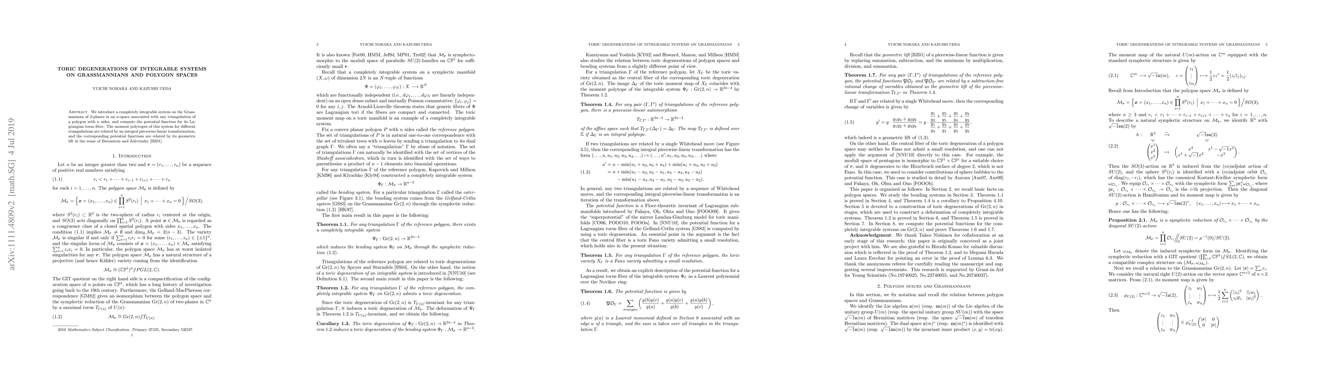 We introduce a completely integrable system on the Grassmannian of 2-planes in an n-space associated with any triangulation of a polygon with n sides, and compute the potential function for its Lagrangian torus fiber. The moment polytopes of this system for different triangulations are related by an integral piecewise-linear transformation, and the corresponding potential functions are related by its geometric lift in the sense of Berenstein and Zelevinsky.