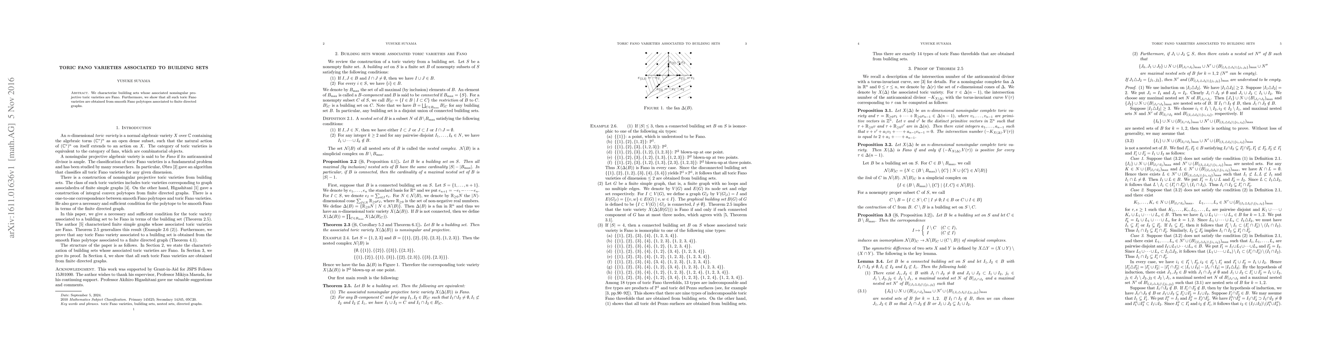 Summary: This paper characterizes building sets leading to nonsingular projective toric Fano varieties and demonstrates that all such toric Fano varieties stem from smooth Fano polytopes linked to finite directed graphs.