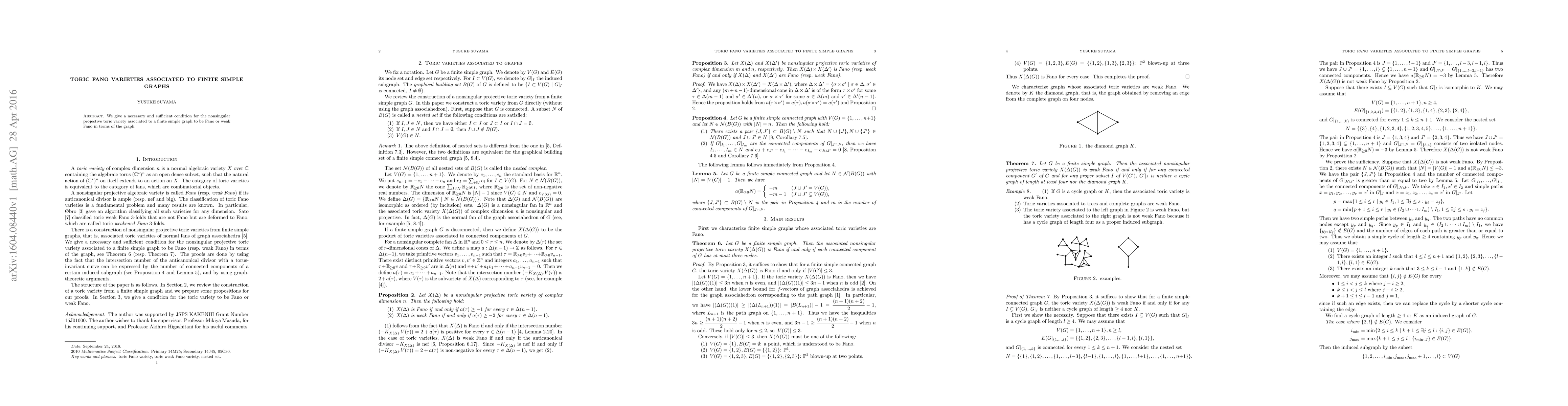 This paper provides a criterion determining when a nonsingular projective toric variety linked to a finite simple graph is Fano or weak Fano, based on properties of the graph. The necessary and sufficient condition hinges on the graph's structure.