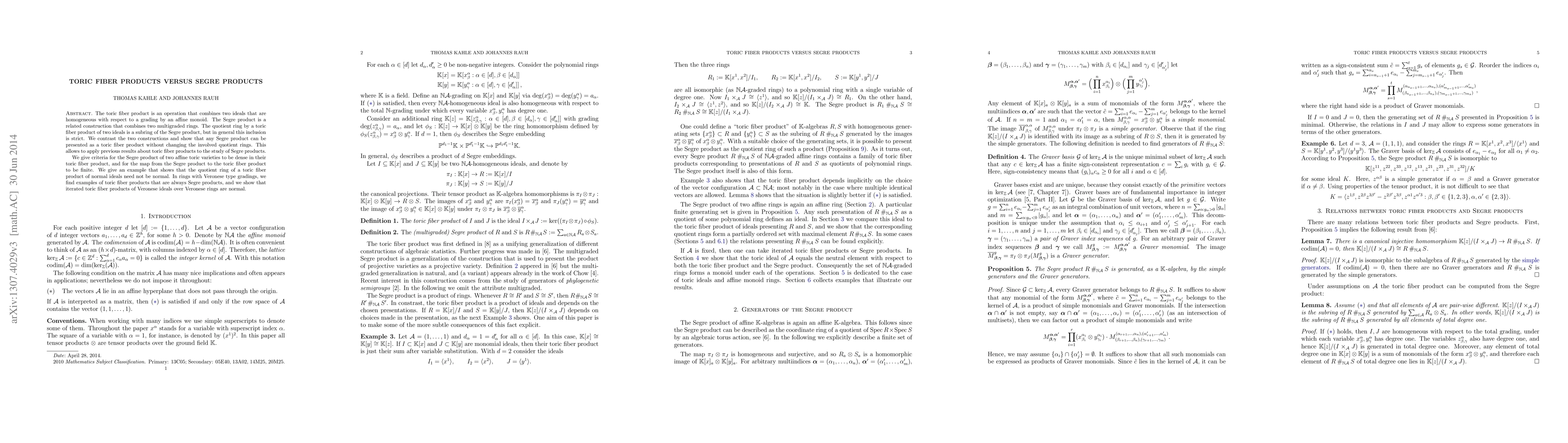 This paper contrasts toric fiber products and Segre products, demonstrating that any Segre product can be represented as a toric fiber product without altering the quotient rings. It provides criteria for the density and finiteness of Segre products in toric fiber products and discusses the normality of quotient rings in specific cases.