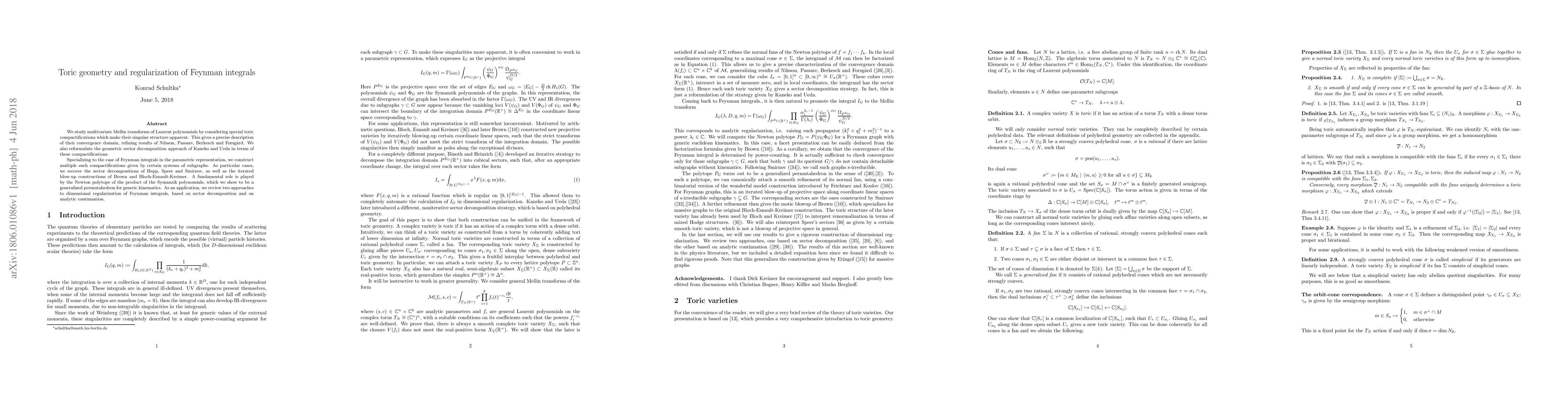 This paper explores the use of toric geometry to regularize Feynman integrals by analyzing the convergence domains of multivariate Mellin transforms of Laurent polynomials. It introduces special toric compactifications to clarify the singular structure and reformulates geometric sector decompositions, ultimately applying these methods to dimensional regularization of Feynman integrals.