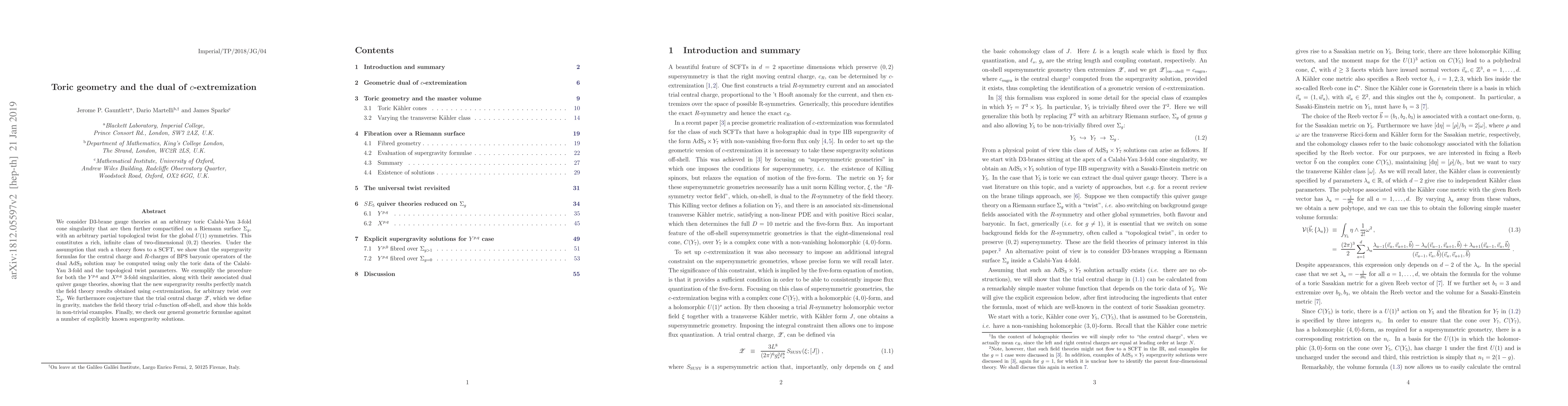 We consider D3-brane gauge theories at an arbitrary toric Calabi-Yau 3-fold cone singularity that are then further compactified on a Riemann surface $\Sigma_g$, with an arbitrary partial topological twist for the global $U(1)$ symmetries. This constitutes a rich, infinite class of two-dimensional $(0,2)$ theories. Under the assumption that such a theory flows to a SCFT, we show that the supergravity formulas for the central charge and $R$-charges of BPS baryonic operators of the dual AdS$_3$ solution may be computed using only the toric data of the Calabi-Yau 3-fold and the topological twist parameters. We exemplify the procedure for both the $Y^{p,q}$ and $X^{p,q}$ 3-fold singularities, along with their associated dual quiver gauge theories, showing that the new supergravity results perfectly match the field theory results obtained using $c$-extremization, for arbitrary twist over $\Sigma_g$. We furthermore conjecture that the trial central charge $\mathscr{Z}$, which we define in gravity, matches the field theory trial $c$-function off-shell, and show this holds in non-trivial examples. Finally, we check our general geometric formulae against a number of explicitly known supergravity solutions.