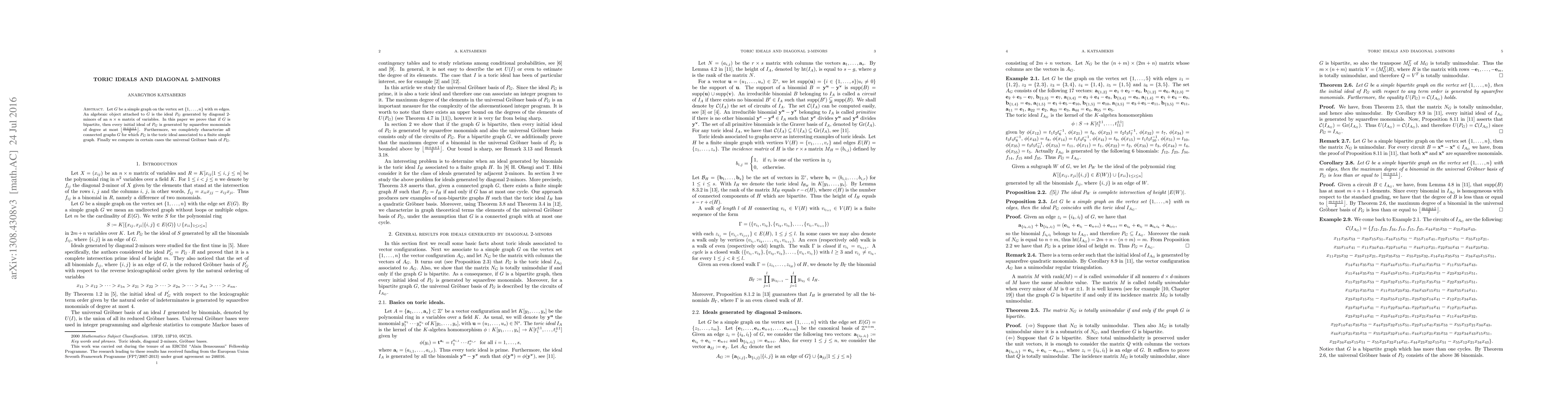 This paper proves that for bipartite graphs, every initial ideal of the ideal generated by diagonal 2-minors is squarefree and bounded by a specific degree. It also characterizes connected graphs where this ideal is toric and computes the universal Gröbner basis in certain cases.
