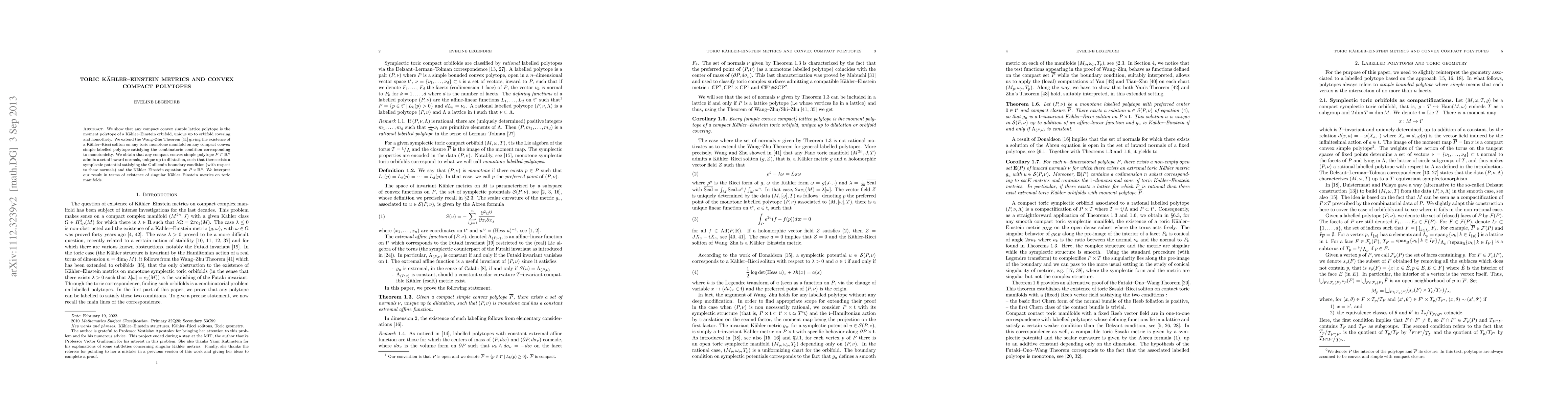 We show that any compact convex simple lattice polytope is the moment polytope of a K\"ahler-Einstein orbifold, unique up to orbifold covering and homothety. We extend the Wang-Zhu Theorem \cite{WZ} giving the existence of a K\"ahler-Ricci soliton on any toric monotone manifold on any compact convex simple labelled polytope satisfying the combinatoric condition corresponding to monotonicity. We obtain that any compact convex simple polytope $P\subset \bR^n$ admits a set of inward normals, unique up to dilatation, such that there exists a symplectic potential satisfying the Guillemin boundary condition (with respect to these normals) and the K\"ahler-Einstein equation on $P\times \bR^n$. We interpret our result in terms of existence of singular K\"ahler-Einstein metrics on toric manifolds.