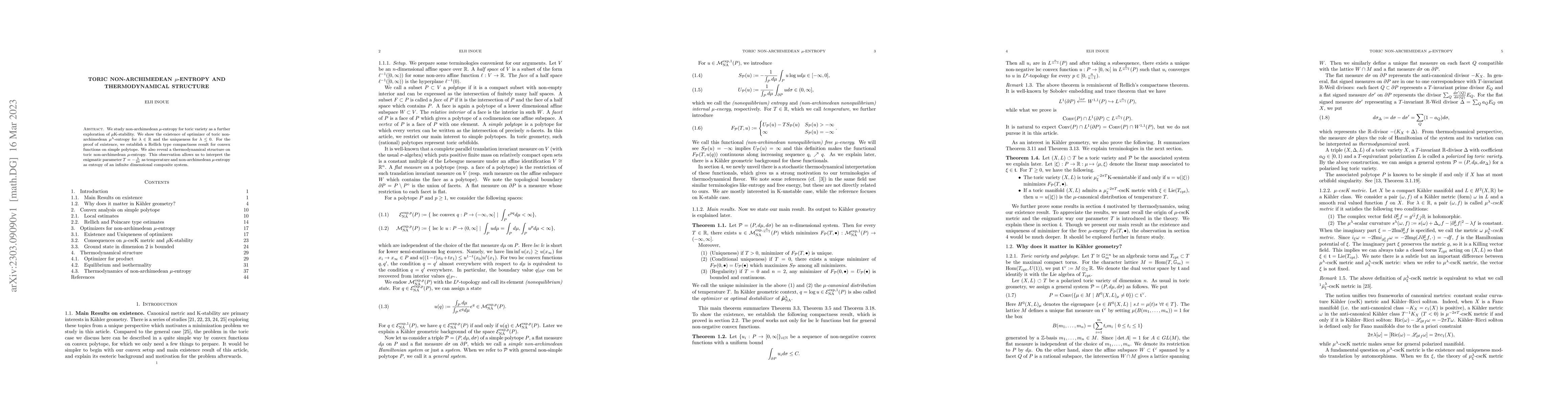 This paper explores the non-archimedean $\mu$-entropy for toric varieties, proving the existence and uniqueness of optimizers for specific $\lambda$ values. It also uncovers a thermodynamical structure, interpreting the parameter $T$ as temperature and the entropy as a measure for an infinite dimensional composite system.