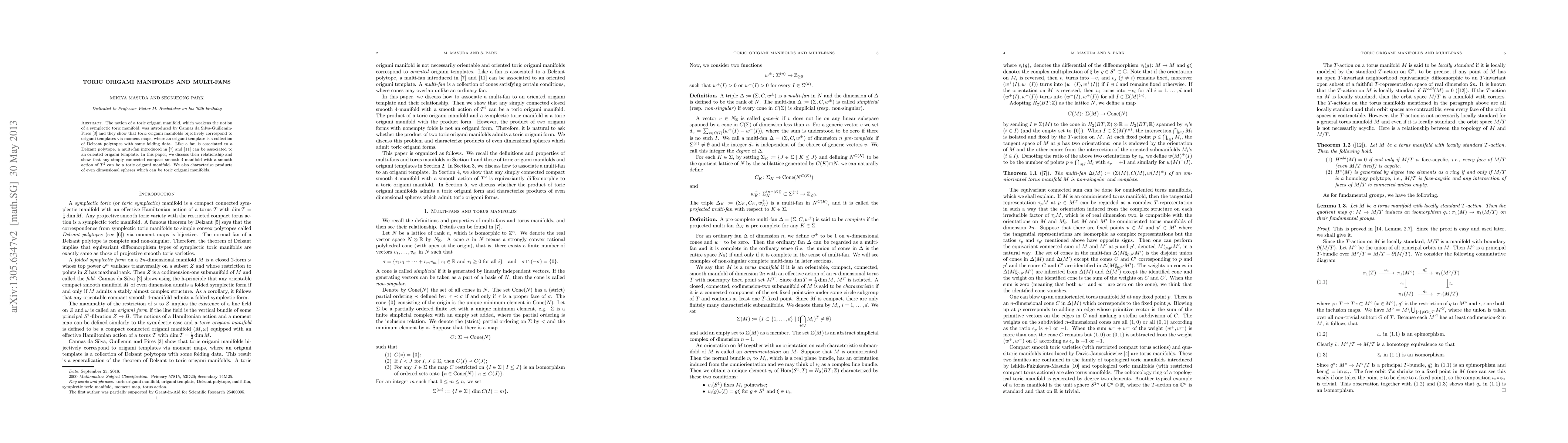 This paper explores the connection between toric origami manifolds and multi-fans, demonstrating that simply connected compact smooth 4-manifolds with a $T^2$ action can be toric origami manifolds, and characterizes products of even-dimensional spheres that fit this description.