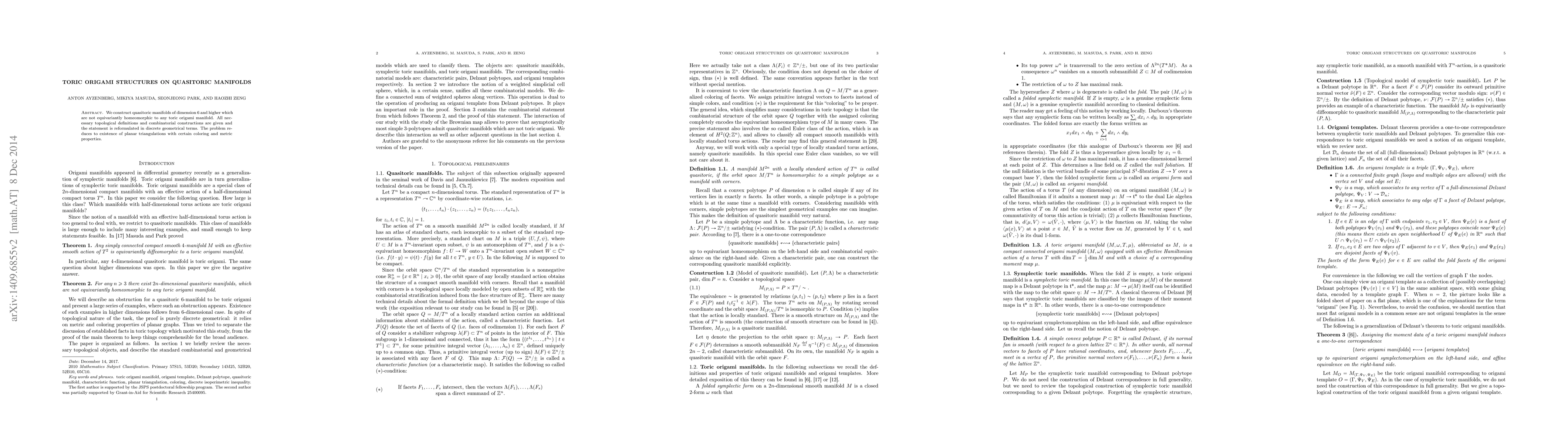 This paper constructs quasitoric manifolds of dimension 6 and higher that do not correspond to toric origami structures. It explores topological definitions and combinatorial constructions to reformulate the problem in discrete geometric terms, focusing on the existence of specific planar triangulations.