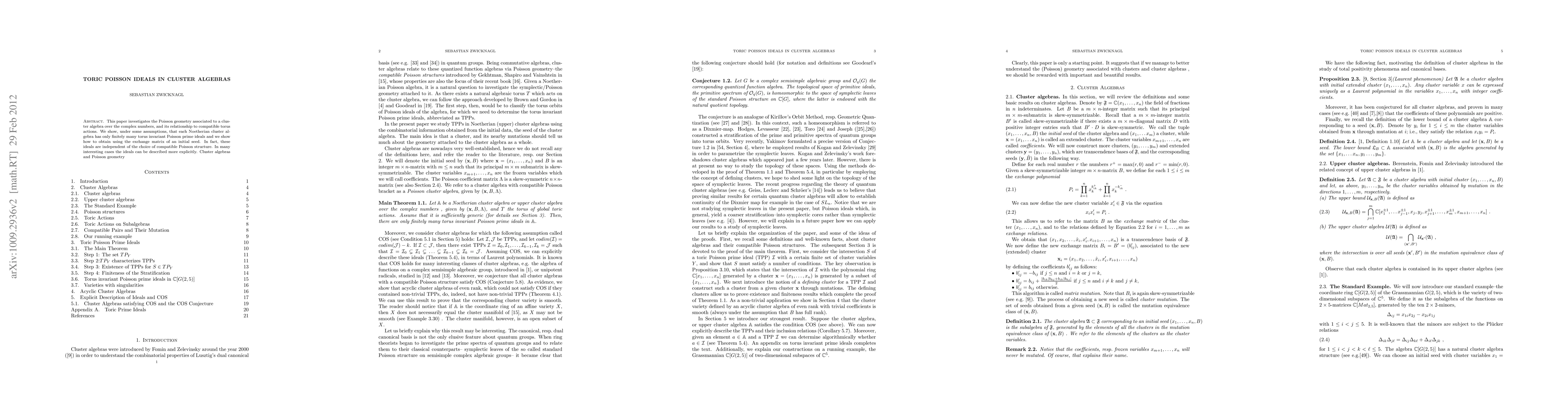 This paper investigates the Poisson geometry associated to a cluster algebra over the complex numbers, and its relationship to compatible torus actions. We show, under some assumptions, that each Noetherian cluster algebra has only finitely many torus invariant Poisson prime ideals and we show how to obtain using the exchange matrix of an initial seed. In fact, these ideals are independent of the choice of compatible Poisson structure. In many interesting cases the ideals can be described more explicitly.