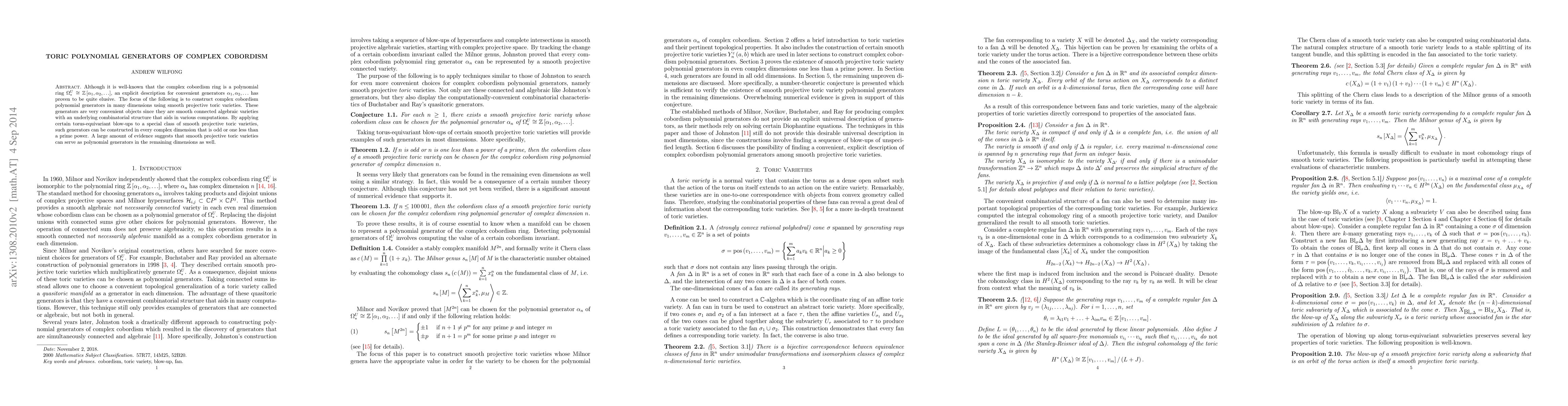 The paper constructs explicit generators for the complex cobordism ring using smooth projective toric varieties, providing a combinatorial structure that simplifies computations. It demonstrates the construction in certain dimensions and suggests toric varieties may also serve as generators in other dimensions.
