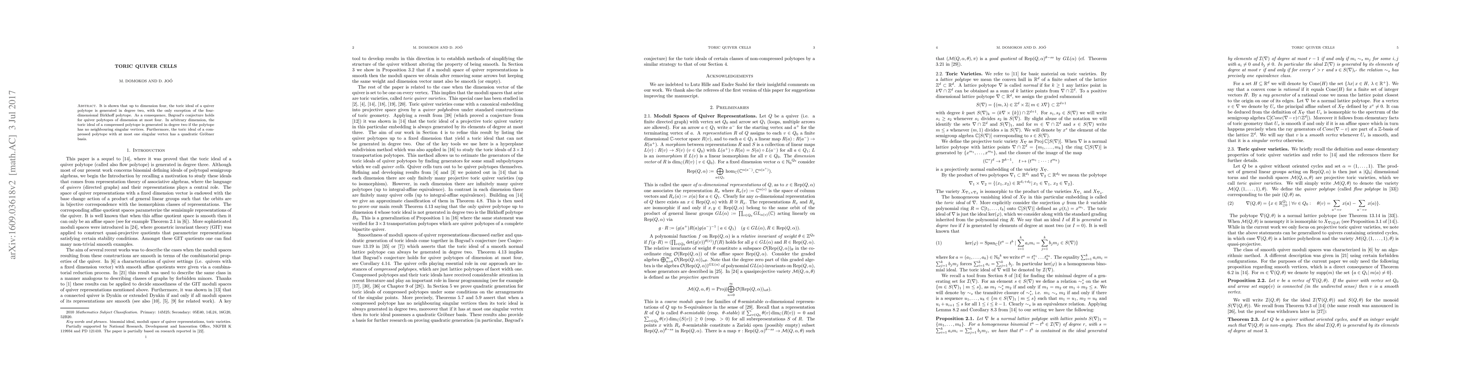 The paper proves that toric ideals of quiver polytopes in dimensions up to four are generated in degree two, confirming Bøgvad's conjecture for these cases. In higher dimensions, it's shown that compressed polytopes without neighboring singular vertices also have toric ideals generated in degree two. Additionally, compressed polytopes with at most one singular vertex possess quadratic Gröbner bases.
