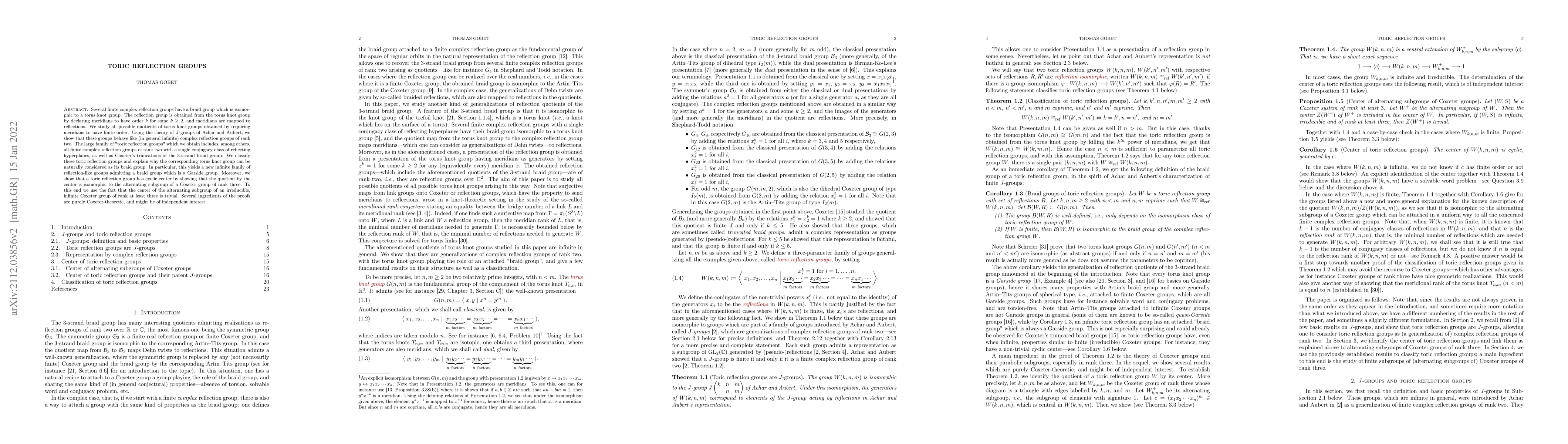 The paper introduces a new family of complex reflection groups called toric reflection groups, which include finite groups with braid groups that are isomorphic to torus knot groups.