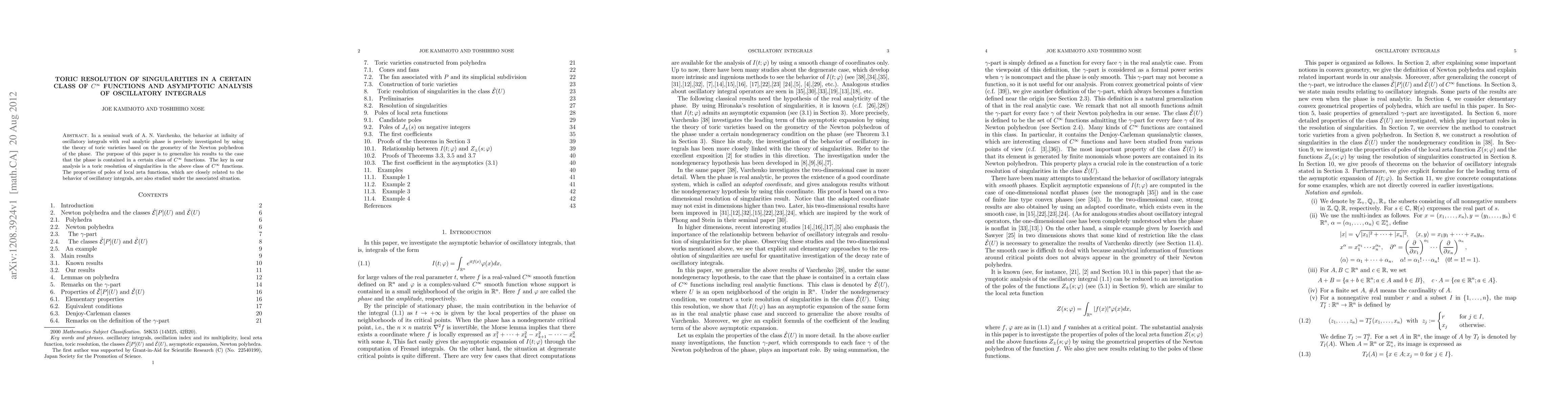 This paper generalizes A. N. Varchenko's results on the asymptotic analysis of oscillatory integrals by employing toric resolution of singularities for a specific class of $C^{\infty}$ functions. It investigates the behavior of poles of local zeta functions related to these integrals.