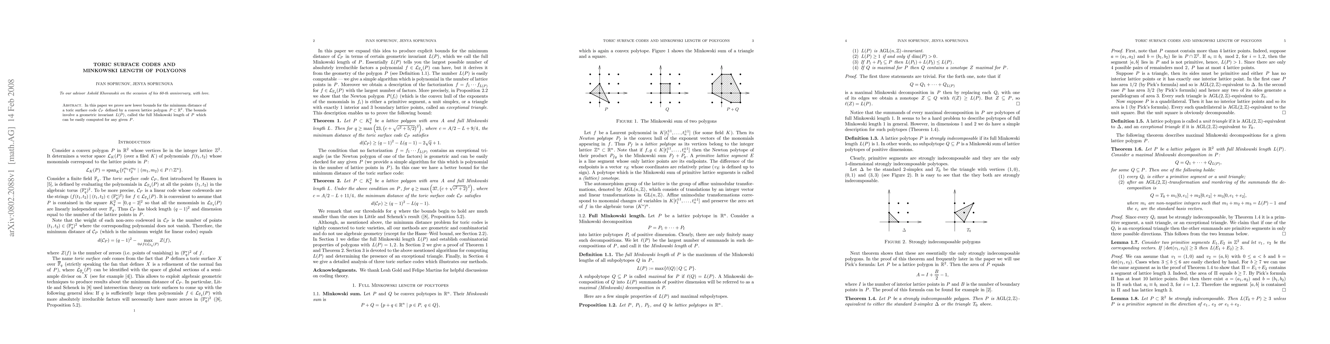 This paper establishes new lower bounds for the minimum distance of toric surface codes using a geometric invariant called the full Minkowski length of a convex lattice polygon, providing a straightforward method for computation.