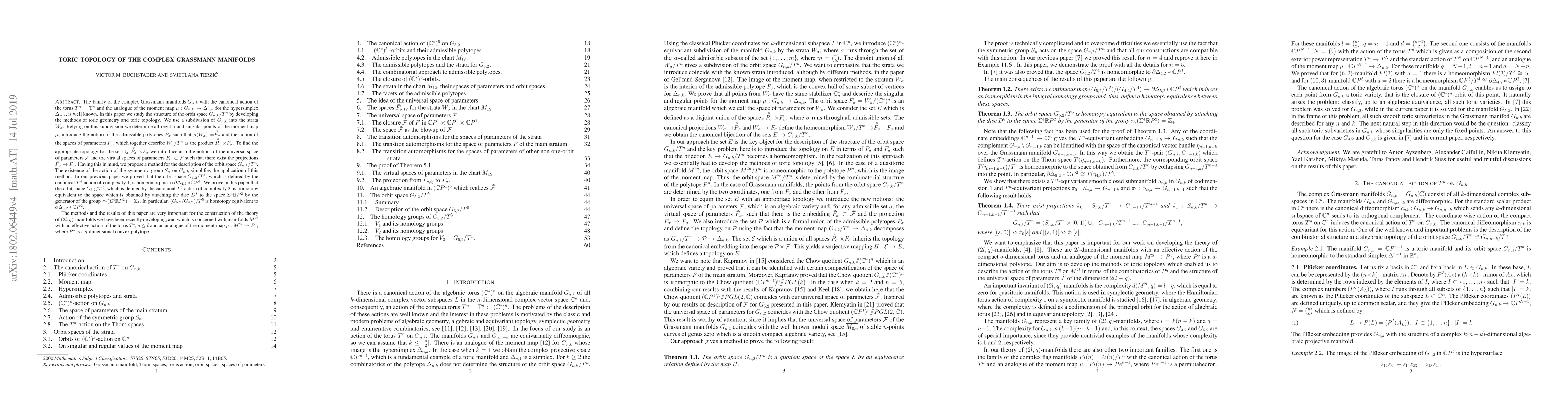 The family of the complex Grassmann manifolds $G_{n,k}$ with a canonical action of the torus $T^n=\mathbb{T}^{n}$ and the analogue of the moment map $\mu : G_{n,k}\to \Delta _{n,k}$ for the hypersimplex $\Delta _{n,k}$, is well known. In this paper we study the structure of the orbit space $G_{n,k}/T^n$ by developing the methods of toric geometry and toric topology. We use a subdivision of $G_{n,k}$ into the strata $W_{\sigma}$ and determine all regular and singular points of the moment map $\mu$, introduce the notion of the admissible polytopes $P_\sigma$ such that $\mu (W_{\sigma}) = \stackrel{\circ}{P_{\sigma}}$ and the notion of the spaces of parameters $F_{\sigma}$, which together describe $W_{\sigma}/T^{n}$ as the product $\stackrel{\circ}{P_{\sigma}} \times F_{\sigma}$. To find the appropriate topology for the set $\cup _{\sigma} \stackrel{\circ}{P_{\sigma}} \times F_{\sigma}$ we introduce the notions of the universal space of parameters $\tilde{\mathcal{F}}$ and the virtual spaces of parameters $\tilde{F}_{\sigma}\subset \tilde{\mathcal{F}}$ such that there exist the projections $\tilde{F}_{\sigma}\to F_{\sigma}$. Hence, we propose a method for the description of the orbit space $G_{n,k}/T^n$. Earlier we proved that the orbit space $G_{4,2}/T^4$, defined by the canonical $T^4$-action of complexity $1$, is homeomorphic to $\partial \Delta _{4,2}\ast \mathbb{C} P^1$. We prove here that the orbit space $G_{5,2}/T^5$, defined by the canonical $T^5$-action of complexity $2$, is homotopy equivalent to the space obtained by attaching the disc $D^8$ to the space $\Sigma ^{4}\mathbb{R} P^2$ by the generator of the group $\pi _{7}(\Sigma ^{4}\mathbb{R} P^2)=\mathbb{Z} _{4}$. In particular, $(G_{5,2}/G_{4,2})/T^5$ is homotopy equivalent to $\partial \Delta _{5,2}\ast \mathbb{C} P^2$. The methods and the results of this paper are fundaments for our theory of $(2l,q)$-manifolds.