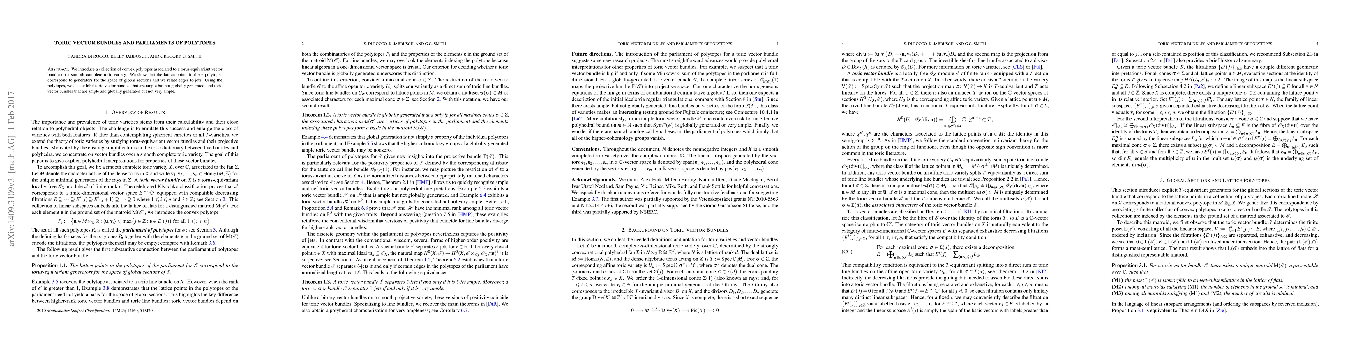 This paper introduces convex polytopes linked to torus-equivariant vector bundles on toric varieties, demonstrating that the lattice points within these polytopes correspond to global section generators. It also identifies specific toric vector bundles that are ample but not globally generated, and others that are ample and globally generated but not very ample.