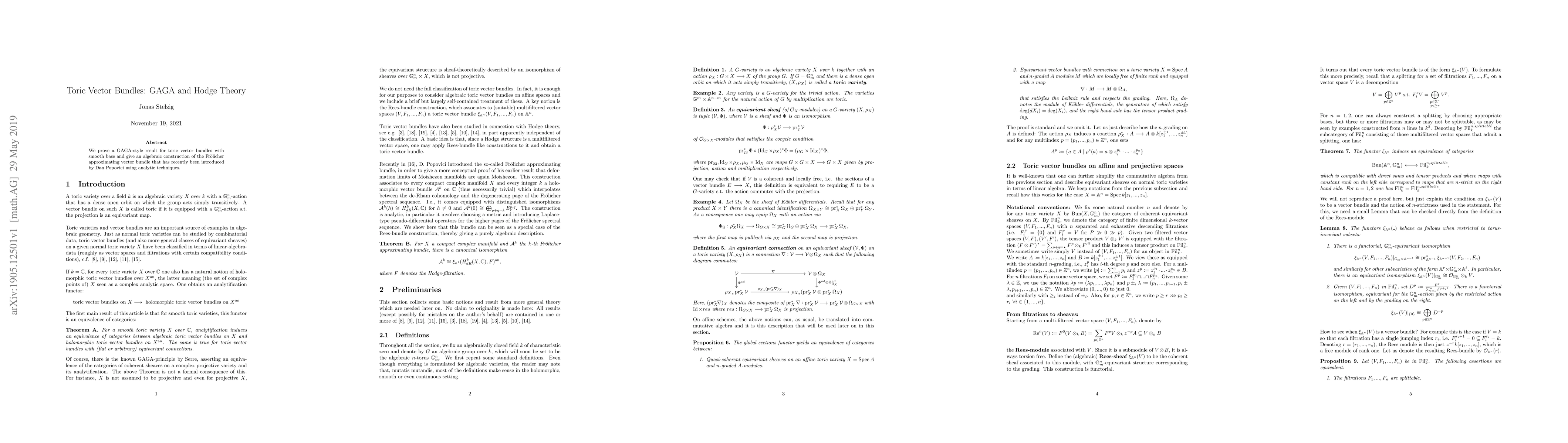 Summary: This paper establishes a GAGA-style theorem for toric vector bundles on smooth bases and provides an algebraic construction for the Fr\"olicher approximating vector bundle, previously developed by Dan Popovici through analytic methods.