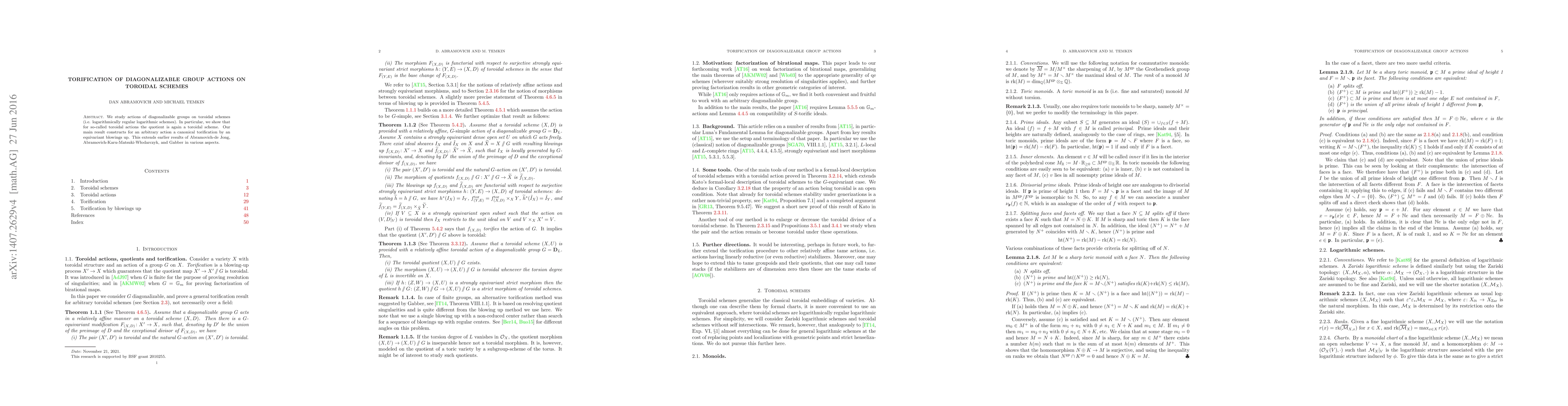 This paper investigates actions of diagonalizable groups on toroidal schemes, proving that toroidal actions yield toroidal quotients. It constructs a canonical torification for any action, making it toroidal via equivariant blowings up, extending previous results by Abramovich-de Jong and others.