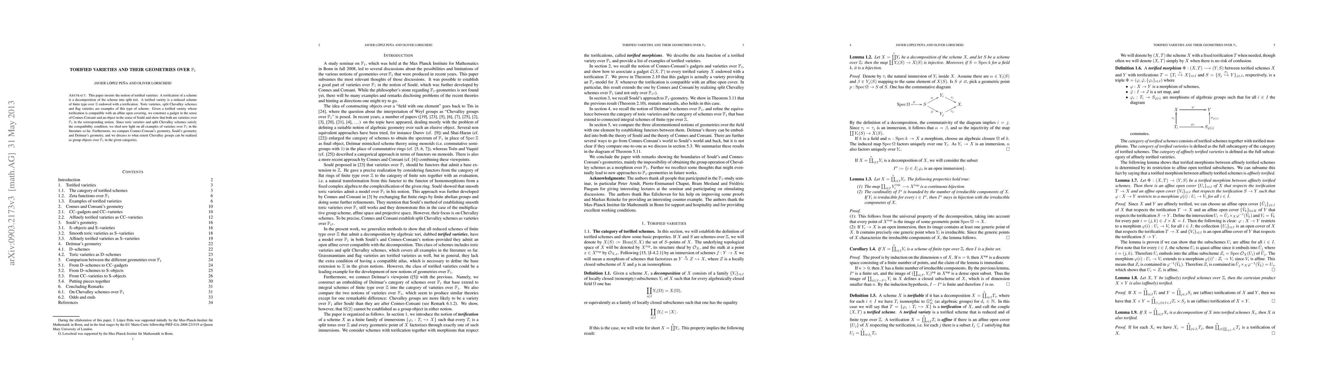This paper introduces torified varieties, schemes decomposed into split tori, and constructs gadgets and objects over $\F_1$ from compatible torifications, providing new insights into varieties over $\F_1$ and comparing different geometric frameworks.