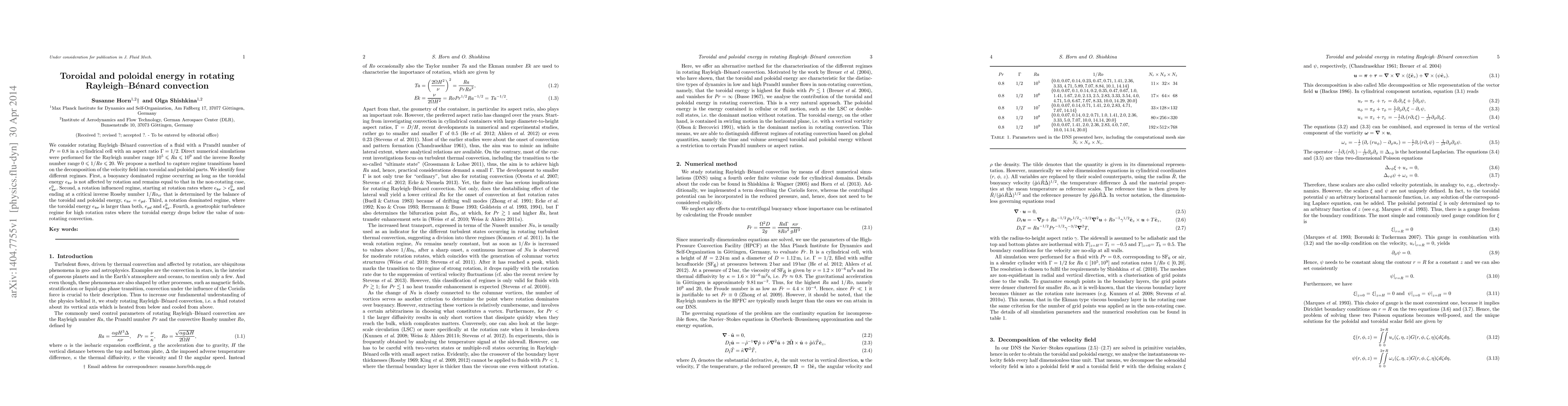 The paper introduces a method for classifying regime transitions in rotating Rayleigh-Bénard convection based on the decomposition of the velocity field into toroidal and poloidal components.