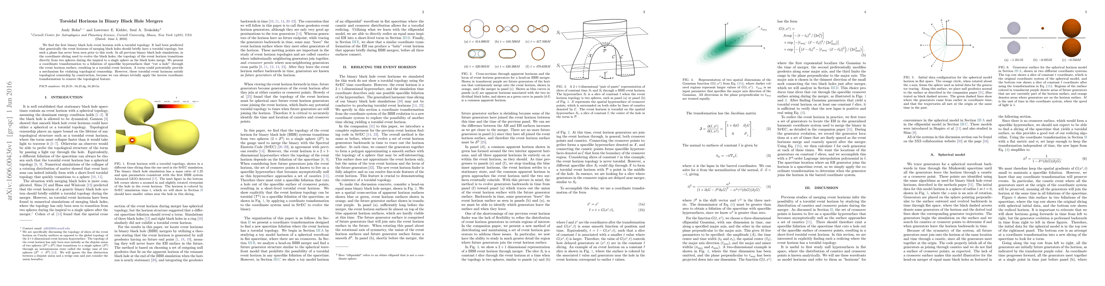 The paper introduces a novel coordinate transformation technique to expose the toroidal topology of event horizons in binary black hole mergers, challenging previous assumptions about the direct transition from two spheres to a single sphere during merger.