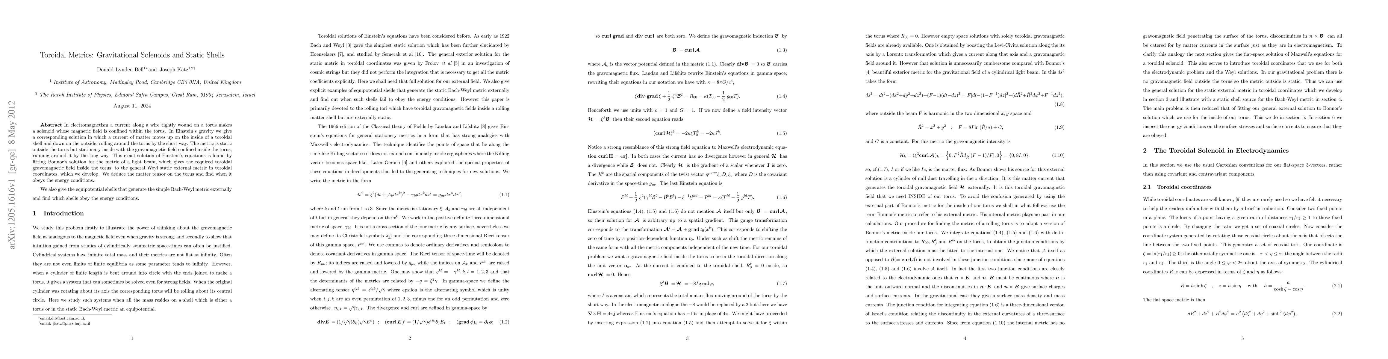 Researchers found a solution to Einstein's gravity equations that creates a toroidal shape with matter flowing inwards and outwards, creating a confined gravomagnetic field. The study also explores the implications of this 'toroidal metric' on energy conditions and equipotential shells.