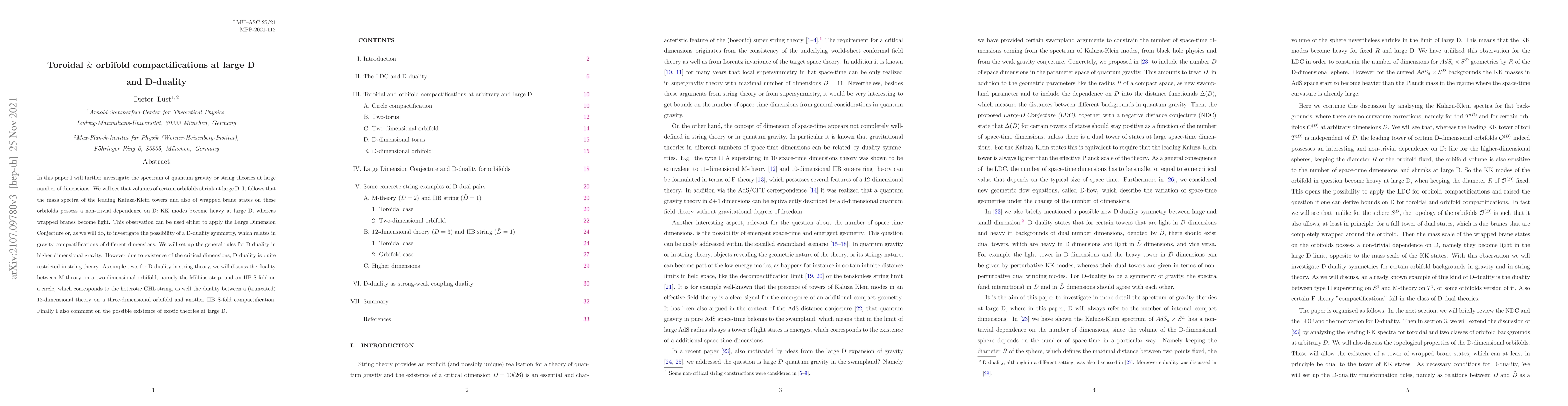 This paper explores the spectrum of quantum gravity or string theories in high dimensions, revealing that orbifold volumes shrink at large D, leading to heavy Kaluza-Klein modes and light wrapped branes. It investigates D-duality symmetry, establishing rules for it in higher-dimensional gravity and discussing specific dualities in string theory, including M-theory on a Möbius strip and IIB S-fold compactifications.