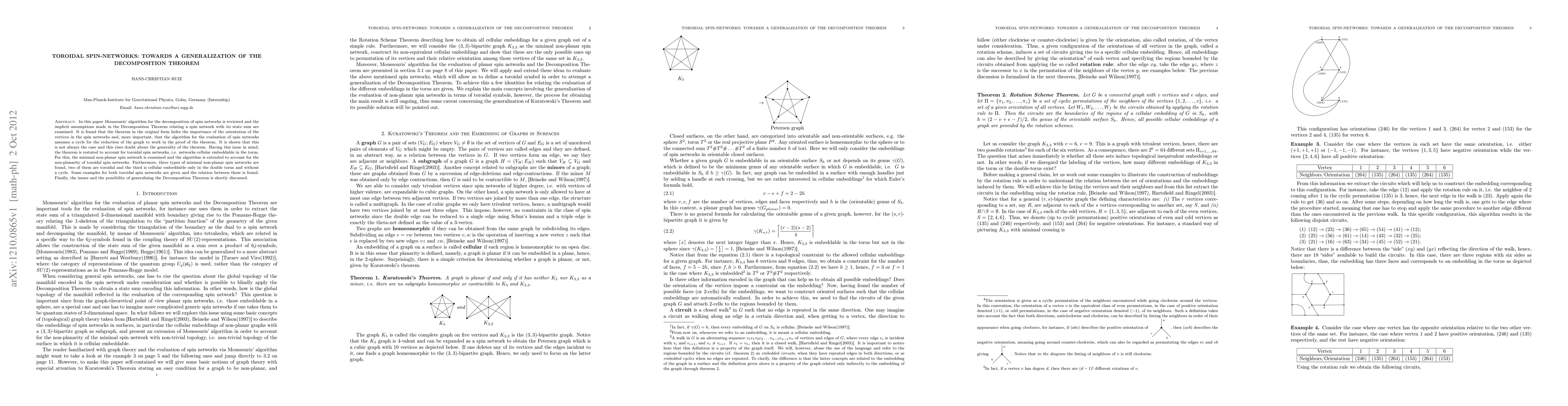In this paper Moussouris' algorithm for the decomposition of spin networks is reviewed and the implicit assumptions made in the Decomposition Theorem relating a spin network with its state sum are examined. It is found that the theorem in the original form hides the importance of the orientation of the vertices in the spin networks and, more important, that the algorithm for the evaluation of spin networks assumes a cycle for the reduction of the graph to work in the proof of the theorem. It is shown that this is not always the case and this rises doubt about the generality of the theorem. Having this issue in mind, the theorem is restated to account for toroidal spin networks, i.e. networks cellular embeddable in the torus. For this, the minimal non-planar spin network is examined and the algorithm is extended to account for the non-planarity of toroidal spin networks. Furthermore, three types of minimal non-planar spin networks are found, two of them are toroidal and the third is cellular embeddable only in the double torus and without a cycle. Some examples for both toroidal spin networks are given and the relation between these is found. Finally, the issues and the possibility of generalizing the Decomposition Theorem is shortly discussed.